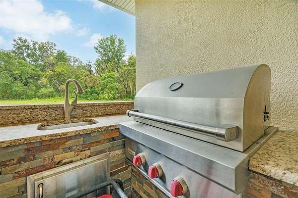 Step outside to enjoy the outdoor kitchen area, perfect for weekend grilling, al fresco dining, and hosting gatherings in your private, scenic backyard.