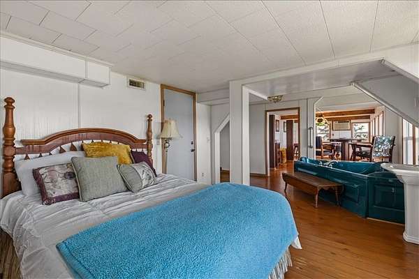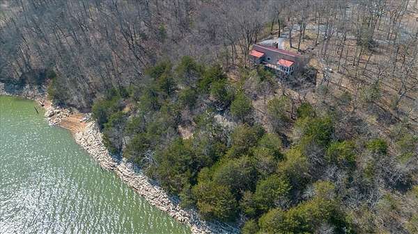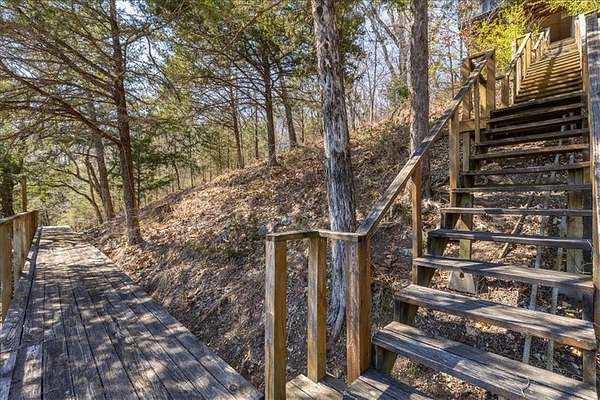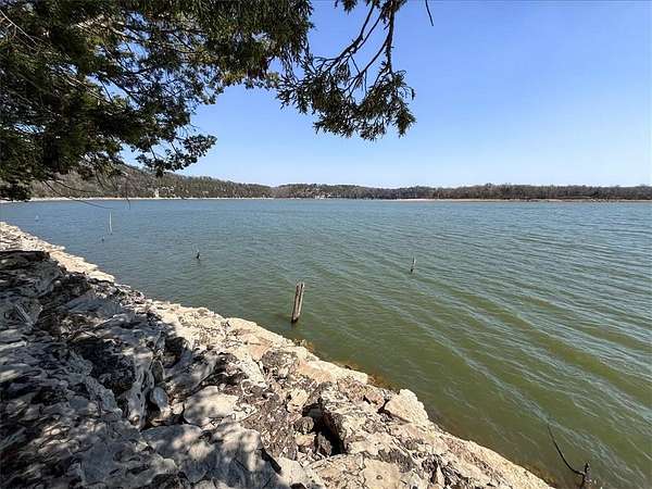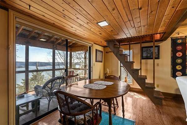 Rare opportunity to have 4+ acres; 368 feet of Beaver Lake shoreline right on Horseshoe Bend with a cute cabin/cottage core style home with stairs and a deck to lake.