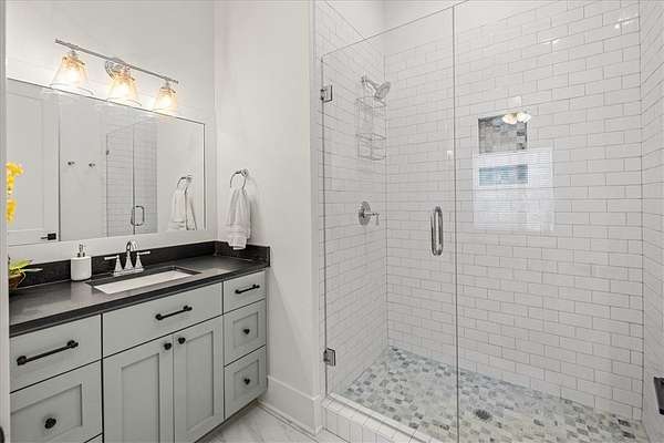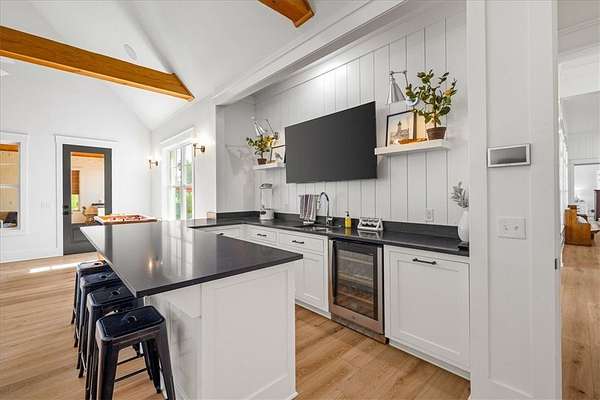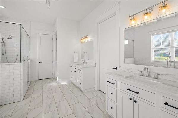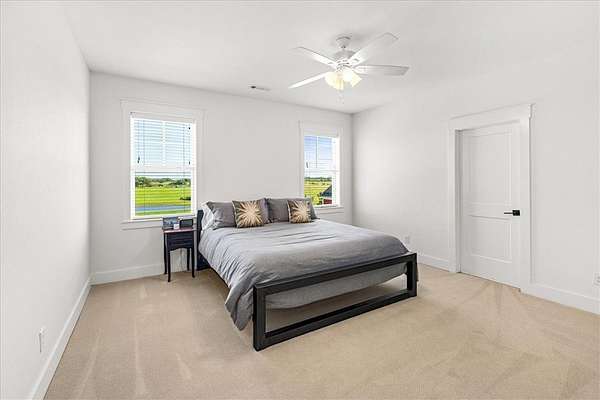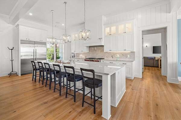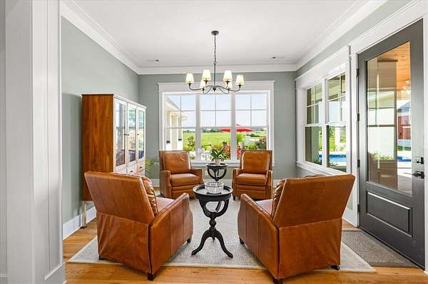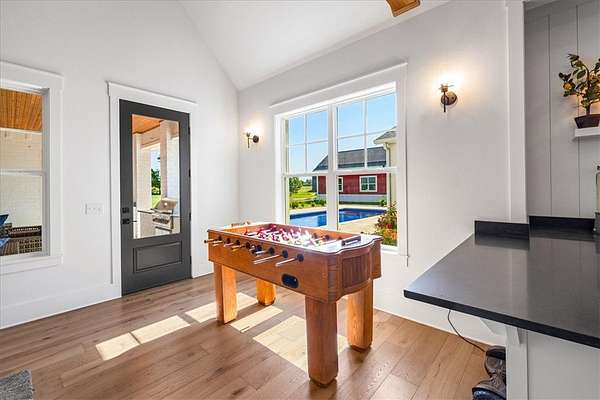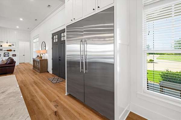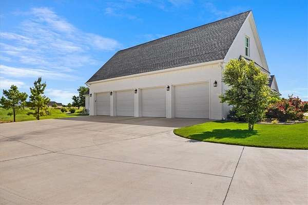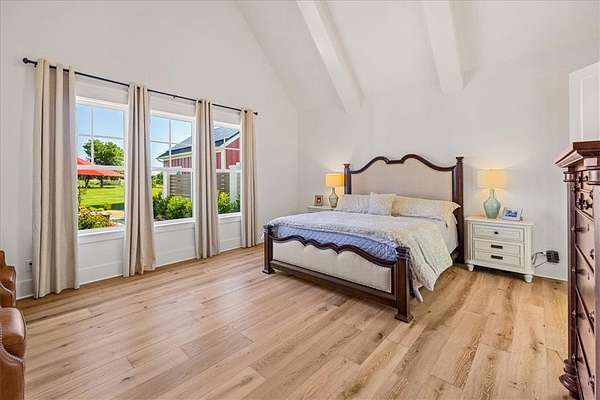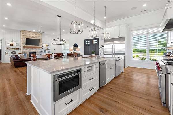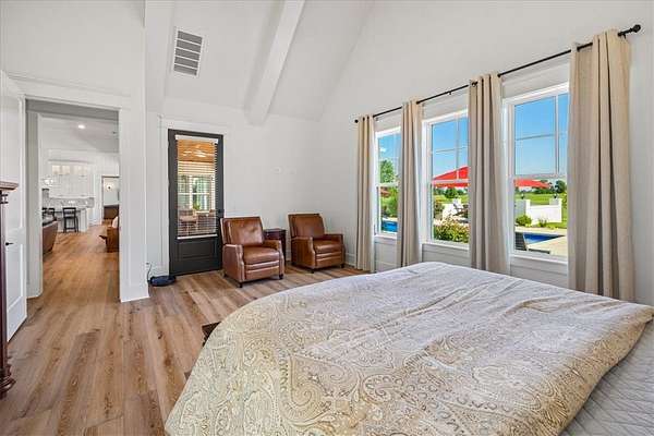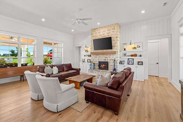 Stunning custom Colonial-style farmhouse on 5.4 acres in Bentonville with over 5,800 sq ft of living space and 1,400+ sq ft of covered patio. Main level features 3 spacious bedrooms with en-suite baths; upstairs offers 2 oversized bedrooms with a Jack & Jill bath. Chef's kitchen includes Wolf range, built-in fridge/freezer, farmhouse sink, ice maker, and custom cabinetry. Butler's pantry with prep sink, floor-to-ceiling storage, and second dishwasher. Enjoy outdoor living with a large in-ground pool, mature landscaping, and multiple covered patios. Circular driveway adds curb appeal and convenience. Ideally located between XNA, Pinnacle Promenade, and downtown Bentonville-offering luxury, privacy, and accessibility.