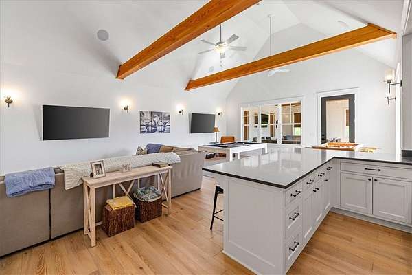 - Attic, Built In Features, Cathedral Ceilings, Ceiling Fans, Eat In Kitchen, Granite Counters, Mud Room, Multiple Living Areas, Pantry, Programmable Thermostat, Split Bedrooms, Walk In Closets, Wet Bar, Window Treatments, Wired For Sound, Wood Burning Stove