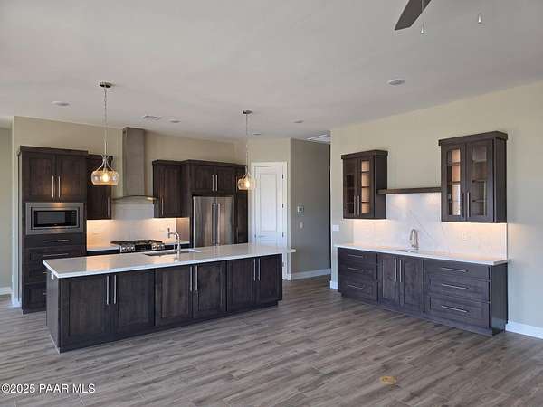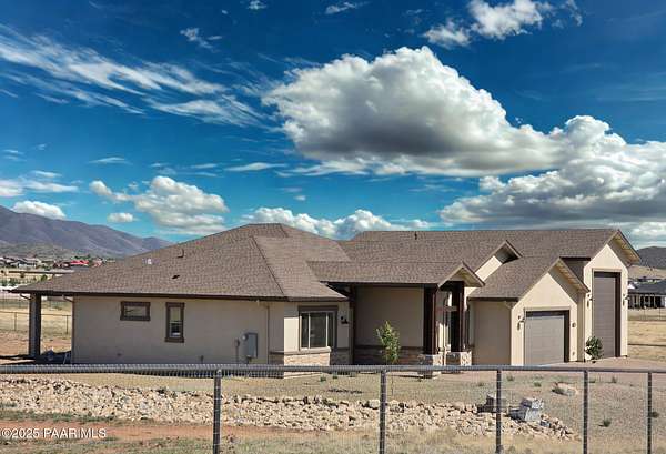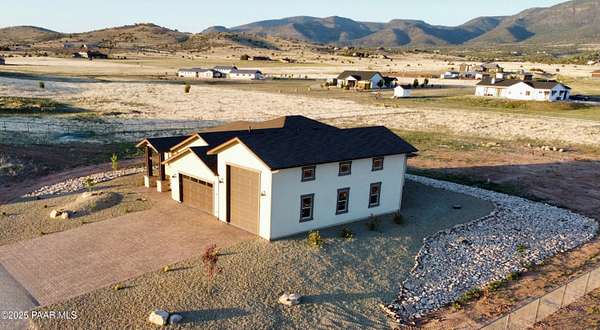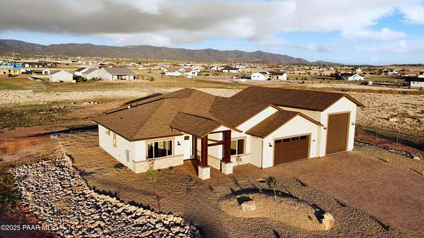 VOTED BEST HOME FOR PRESCOTT VALLEY LUXURY HOME TOUR AUGUST 2025. Escape to your own private sanctuary with this stunning 3-bedroom, 3-bathroom, 2+ car garage and a 44ft RV garage home nestled on 2.5 acres of pristine land located in the heart of Saddle View. Surrounded by panoramic mountain views, this open-concept residence offers the perfect blend of modern comfort and natural beauty.Step inside to find a spacious, light-filled living area with soaring ceilings, a seamless flow between kitchen, dining, and family spaces, and large windows that bring the outdoors in. The chef's kitchen features quartz countertops, stainless steel appliances, and a generous island perfect for entertaining.Each of the three bedrooms is generously sized, with each of the suites offering a luxurious en-suite bath and walk-in closet. The additional two bathrooms are thoughtfully designed for convenience and style.Outside, enjoy endless possibilities - whether you're relaxing on the patio taking in the mountain vistas, starting a garden, or simply enjoying the peace and privacy of your expansive acreage.This is more than a home, its a lifestyle. Ideal for nature lovers, remote workers, or anyone seeking space, serenity, and the beauty of the great outdoors.Construction complete and move in READY!