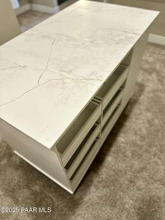 - Bar, Ceiling Fan(s), Kit/Din Combo, Kitchen Island, Live On One Level, Quartz Countertops, Walk-In Closet(s), Wash/Dry Connection, Wet Bar