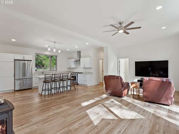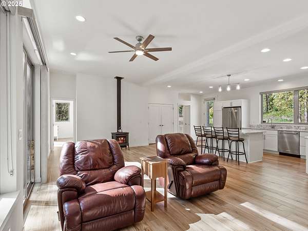 Est $3,943/moA true must see! This ADA accessible one level home sits on 9.11 acres just minutes from downtown Battle Ground! Enjoy cleared horse trails, upscale finishes, and a chef's kitchen with microwave drawer, gas stove, and premium appliances. The living room features a propane fireplace, and luxury laminate flooring flows throughout the entire home. A separate laundry room adds convenience. Out back, a large deck with sleek steel railings spans the length of the home-perfect for entertaining or soaking in the views. Don't miss the Drone/Video Tour!
