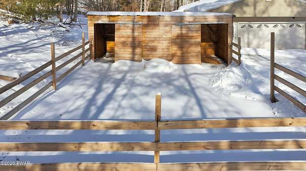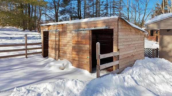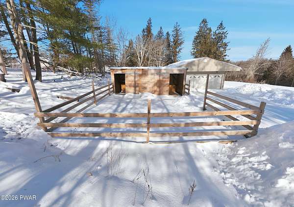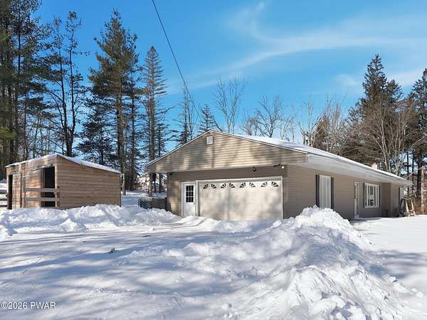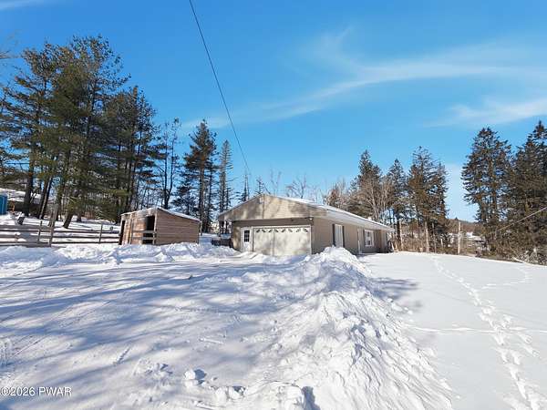 HONESDALE - COUNTRY SETTING - Enjoy the ease of single-level living in this inviting ranch home in Dyberry Township, located in the Wayne Highlands School District. This 2-bedroom, 1-bath home sits on a generous 1.8-acre lot and offers true flexibility with no HOA, no zoning, and no restrictions. The property includes an outbuilding ideal for animals, hobbies, or storage--perfect for those seeking a small homestead, hobby farm, or extra space to work and play. The functional layout supports comfortable, low-maintenance living, while the expansive land provides privacy and room to expand. Also, a full unfinished basement, Whether you're a first-time buyer, down-sizer, or looking for a peaceful rural retreat with freedom to use your land your way, this property is a rare opportunity.