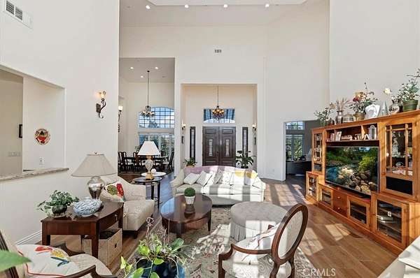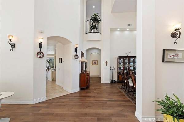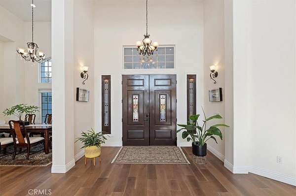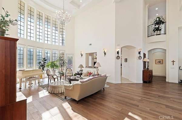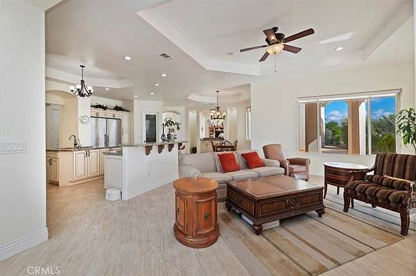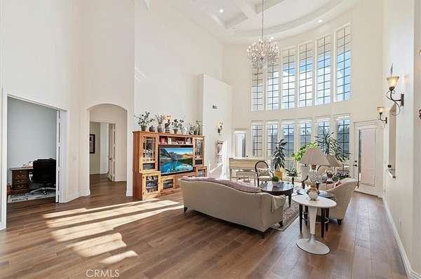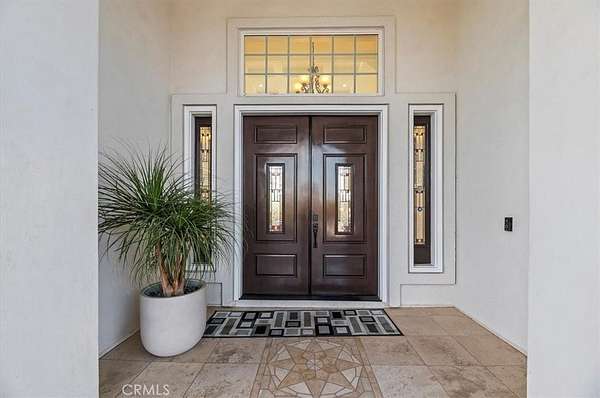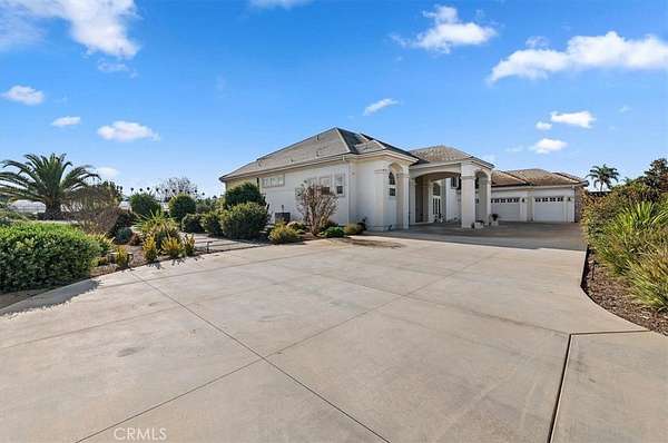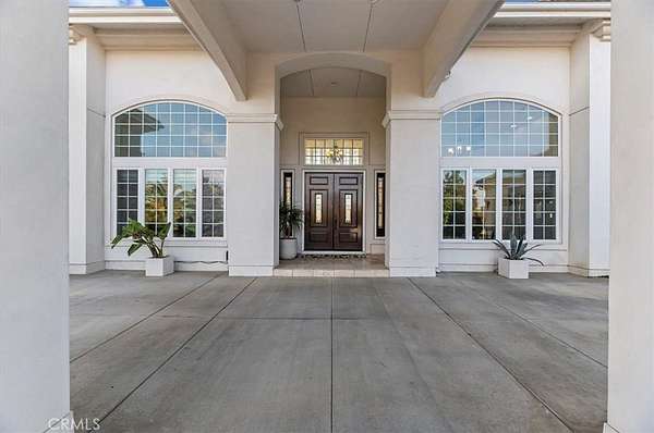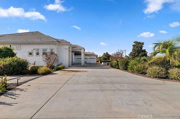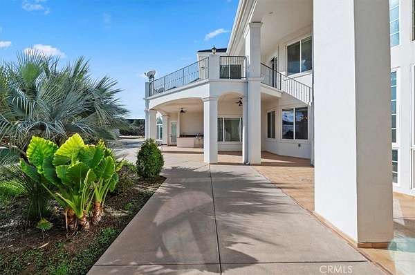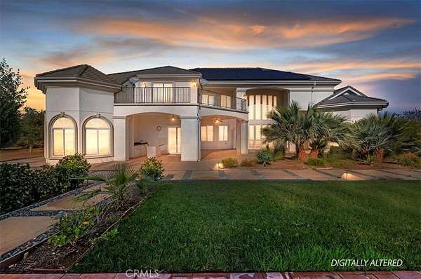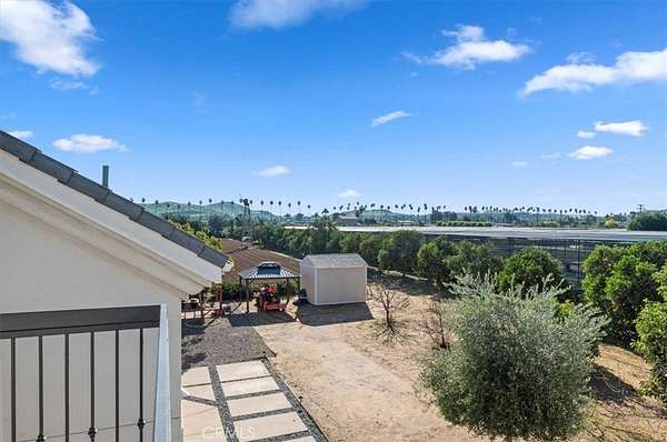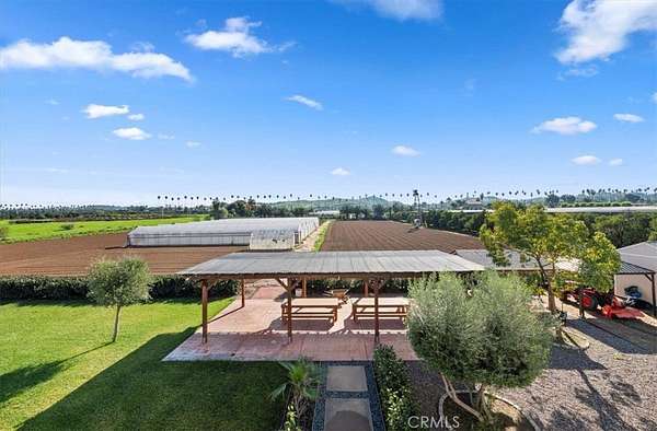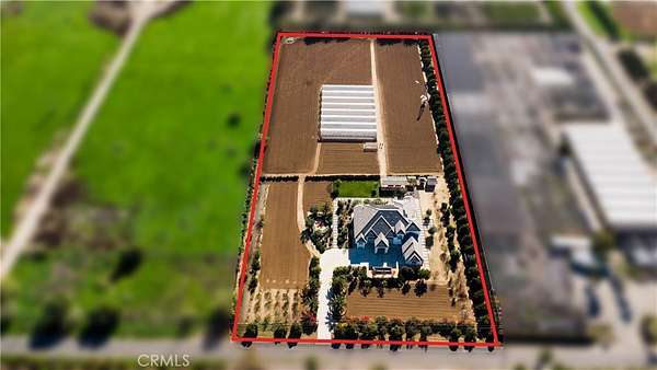 Welcome to an extraordinary gated estate offering privacy, scale, and luxury on approximately 5 acres in a prime Riverside location. Built in 2015 and thoughtfully designed with exceptional craftsmanship, this stunning residence spans approximately 6,500 square feet and delivers a rare blend of elegance, comfort, and resort-style living. A private gated entry and long driveway lead to the impressive façade, framed by manicured grounds and mature landscaping. The property welcomes you with a tranquil koi pond, setting the tone for the peaceful, estate-like atmosphere throughout. Inside, a dramatic two-story foyer and grand living room showcase soaring cathedral ceilings, abundant natural light, and rich hardwood flooring. The formal living and dining spaces are ideal for entertaining, while the expansive family room flows seamlessly into the chef’s kitchen—featuring quartz countertops, a large center island, high-end appliances, and generous cabinetry. The thoughtfully designed floor plan offers exceptional flexibility. The first level includes three bedrooms, including the luxurious primary suite, multiple full bathrooms, and an additional office or bonus room that can function as a sixth bedroom. Upstairs, you’ll find a massive bonus room and two additional bedrooms—each with its own bathroom and walk-in closet—along with private decks that capture beautiful views of the surrounding property. The primary suite is a true retreat, complete with a spa-inspired bathroom, an expansive walk-in closet, and serene views of the grounds. Throughout the home, you’ll find quality finishes, elegant architectural details, and abundant space for both everyday living and hosting on a grand scale. Outdoors, the estate transforms into a private agricultural oasis. The grounds feature multiple large greenhouses, extensive fruit-bearing trees, including mature orange trees, established irrigation with water stock, and ample open space for gardening, farming, recreation, or expansion. Additional highlights include dual solar systems, a spacious three-car garage, and abundant room for vehicles, equipment, or future amenities. This is a rare opportunity to own a truly special property that offers luxury living, privacy, and functional acreage—all within convenient reach of city amenities.