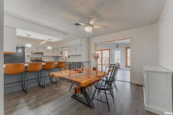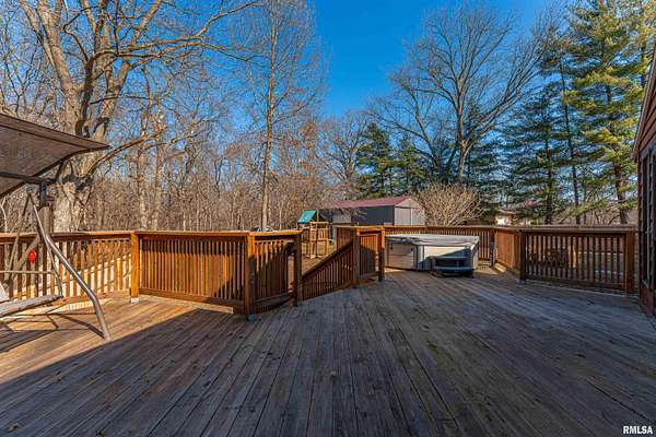 JUST LISTED-- 9830 Oakwood Lane, Petersburg, IL is located on 2.32 wooded acres in a private rural setting, featuring 4 bedrooms, 2 full bathrooms, attached garage, 24x36 shed, a TON of UPDATES, and priced to sell at $369,900! This beautiful home has been completely remodeled over the past 12 years, and is ready for new owners! You'll find three bedrooms upstairs with a full bathroom, one private bedroom downstairs with full bathroom and access to the garage, and on the main floor there is a large living room, open eat-in kitchen, and rear 4 seasons sun room with deck/backyard access and hot tub (to remain)! With these updates, this home will check all of the boxes that you are looking for! There's an oversized, heated 2-car attached garage, rear 24x36 insulated and heated Ragland machine shed (2014), privacy fenced-in back yard and updated deck with hot tub (2020), roof (2016), new vinyl siding, soffit, and gutters with gutter guards (2019), new furnace and a/c (2023), new paint and LVP flooring (2024), new light fixtures and ceiling fans, resealed driveway (2024), updated landscaping (2025), sealed and enveloped crawl space, quartz countertops (2024), and the list goes on and on! This entire property has been remodeled and updated, and ready for new owners to make their own! PRE-INSPECTION ON FILE! Ameren natural gas, city water and well, private septic. Please reach out to the Agent of your choice to see 9830 Oakwood Lane, Petersburg today!