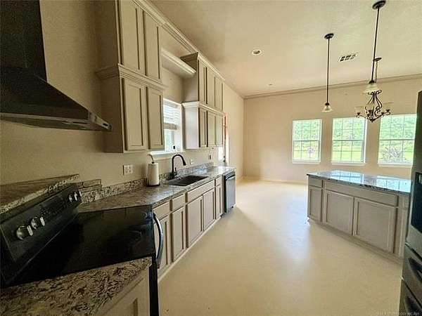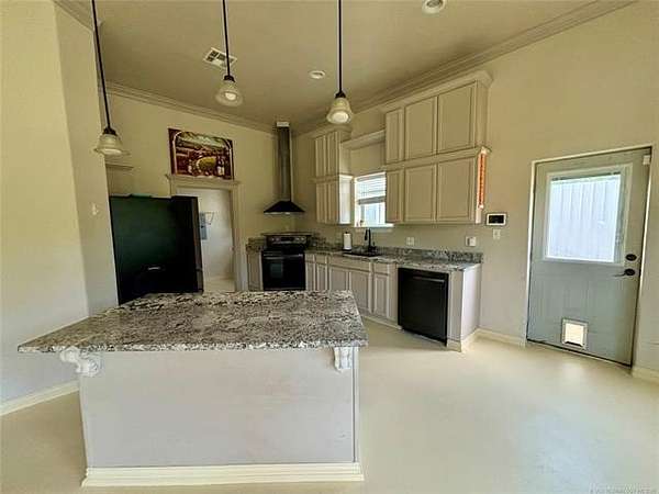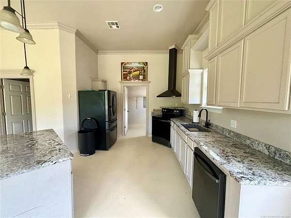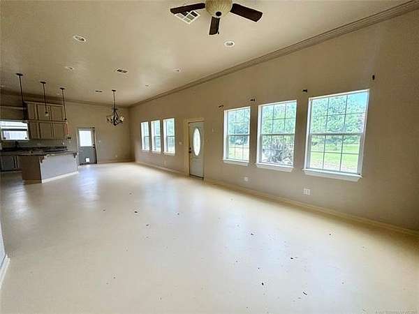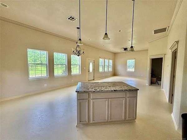 Step into the full kitchen featuring tall custom cabinets, a large island, pantry, and granite countertops that flow into an open-concept dining and living area--flooded with natural light. The spacious bathroom boasts a charming clawfoot tub and a separate walk-in shower. Outside, a massive 70x40 shop includes a bathroom, office, sitting area, and ample storage for all your toys or tools. With tons of space, it could easily be converted into additional living quarters or a guest suite. Tall privacy fenced area and pond on property! Don't miss this rare opportunity to own a one-of-a-kind property near beautiful Lake Tenkiller!
