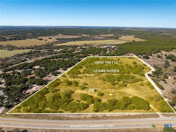 13.829 ACRES OF UNRESTRICTED LAND, FULLY FENCED WITH A GATE ON FM 116 Come and build your dream home here! There are many scenic locations throughout the property to build a home. There is electricity on the property, and co-op water is available. The driveway off FM 116 has a culvert with concrete ends and a gate at the driveway for privacy. There is a roughed-in driveway into the property, as there used to be a residence on the property. There is a two-car carport on a concrete slab that has electricity, and the carport is in very good condition. This land is mostly cleared and flat with many mature shade trees. There are two electrical service panels - one on a power pole, and one on the carport. The property is ready for animals as the perimeter is fenced and and the land is mostly cleared. There are no restrictions on the property. Utilities are provided by Hamilton County Electric Coop and Multi-County Water. Please visit the virtual tour for videos of the beautiful property.