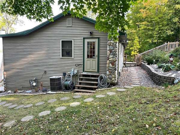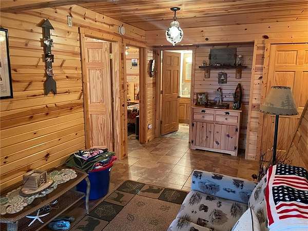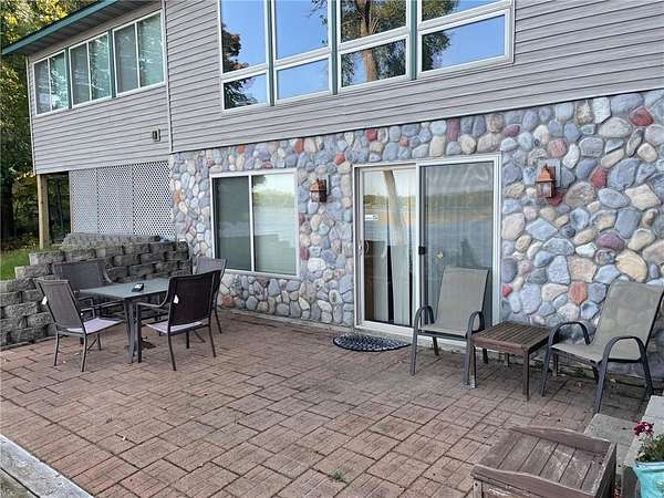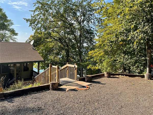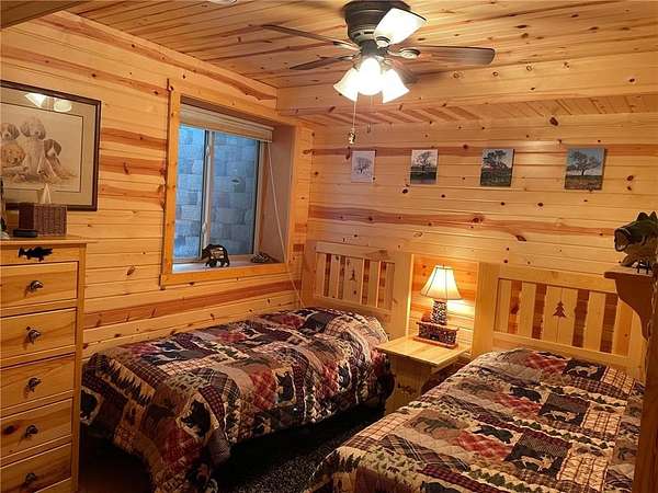 Welcome home to this beauty offering year-round living on Borden Lake, large and deep enough for all your recreation needs & just minutes from Garrison. Built in 2007, this home blends modern conveniences with rustic, log cabin-style finishes. Enter the main level and immediately enjoy the amazing west facing "infinity" lake views featuring colorful sunsets & nothing but nature. Gleaming laminate flows through this open concept boasting a large kitchen with tile backsplash & many cabinets, an 18x17 living room, 18 x17 corner porch and BR on the main. The cabin feel continues downstairs with knotty pine walls/ceilings, 2 more bedrooms, bath and family room with walkout to a large paver patio overlooking 109 ft of private lakeshore. Forced air heat /AC, lower level in-floor heat. New roof (2023), water softener ('22 ), windows ('10) & recently landscaped. City sewer! 2 sheds & kennel. Included with acceptable offer: 68 ft dock and lift, 2 single log framed beds, main level bed, refrigerator in shed. WIFI direct cable with SCI Broadband & Direct TV installed. Move-in ready -- Start making memories!