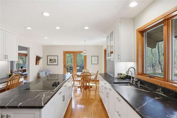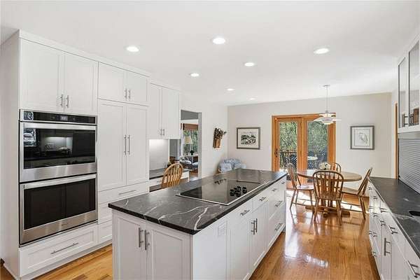 Designed for both everyday living and memorable gatherings, the spacious kitchen features a large center island, double ovens, cooktop, appliance garage, and an informal dining area with sweeping views across the acreage. Multiple living spaces provide flexibility and function, including a stunning sunroom filled with natural light, a loft overlooking the main living area, and a walk-out lower level that opens to an expansive patio.