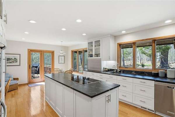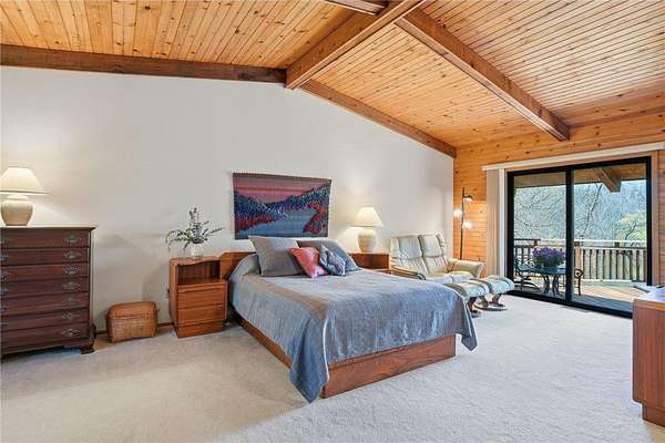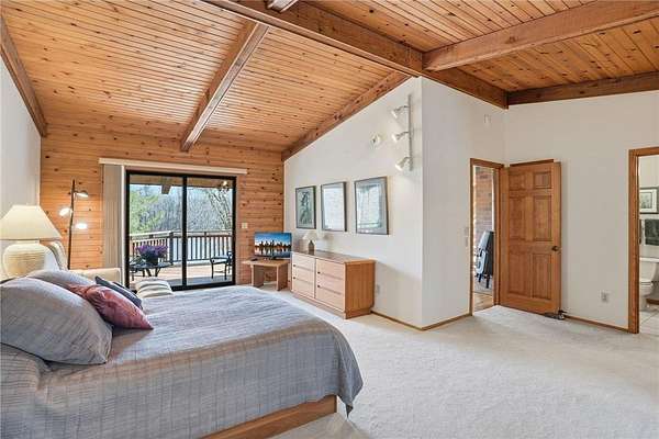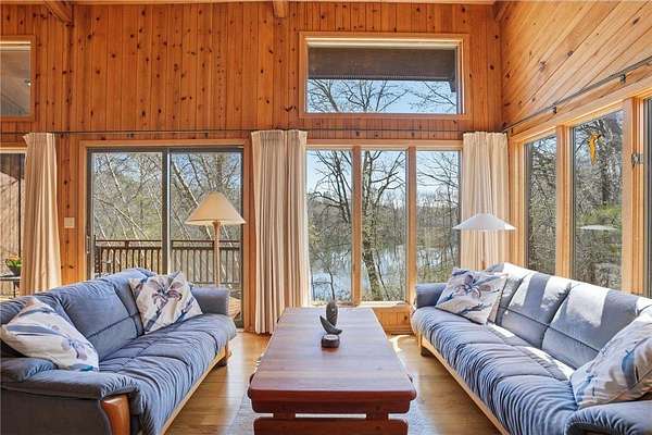 The primary suite serves as a private sanctuary with its own deck overlooking the water, while outdoor living continues with multiple decks, freshly stained, creating seamless indoor-outdoor connection and endless opportunities to relax or entertain.