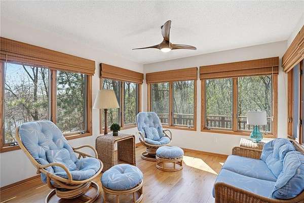 Welcome to a truly exceptional offering in the heart of Eagan, where timeless craftsmanship meets the serenity of a private, cabin-inspired retreat. Set on nearly 8.96 picturesque acres, this one-of-a-kind multi-level home offers a rare blend of luxury, warmth, and natural beauty, with breathtaking views of a 4.5-acre pond from nearly every level.