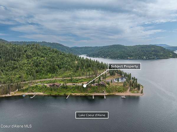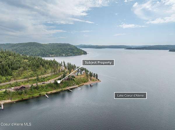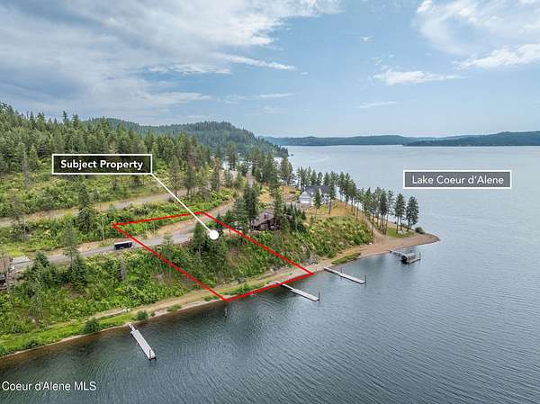 Est $7,648/moPanoramic Lake CDA View Lot with Dock. Unmatched, unobstructed view looking down the main channel of Lake Coeur d'Alene. This premium building lot is fully prepped and ready to go! All utilities in place, paved access right to your future garage pad. Just steps to your private tram and boat dock to enjoy all your summer water toys! The gentle sloping beach and easy access is perfect for swimming, kayaking, or just relaxing by the water. This is prime Idaho real estate ready for your lakefront dream home!