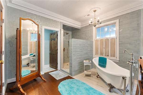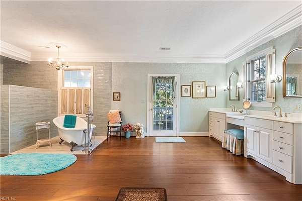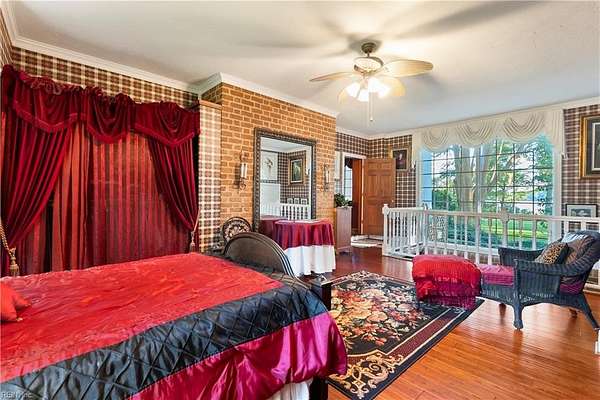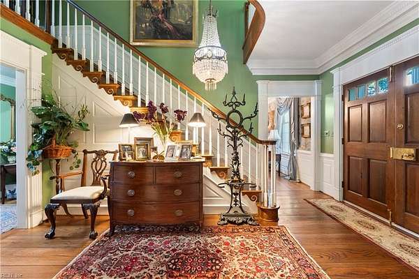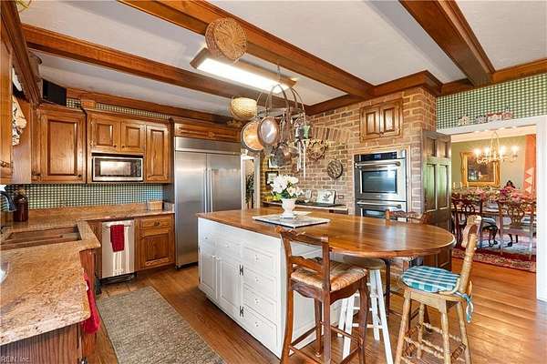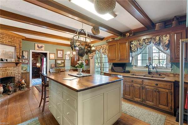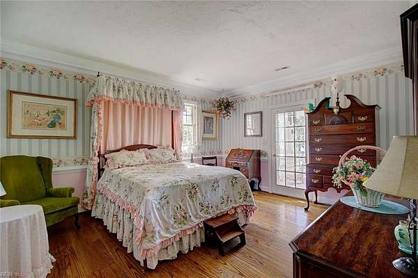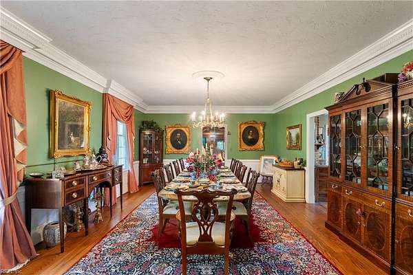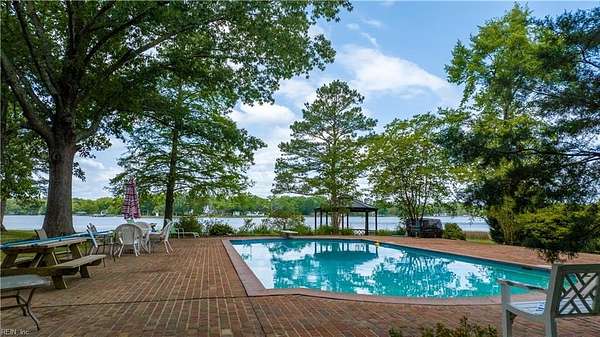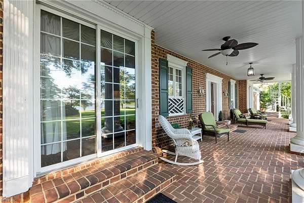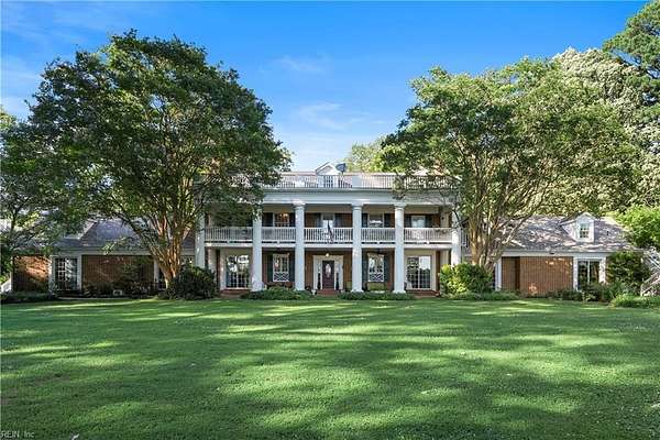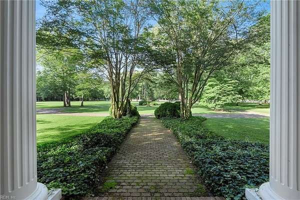 Experience timeless waterfront living on 50 acres with panoramic views, pristine fields, and manicured grounds along the North River. 1100' of amazing shoreline. This elegant colonial estate offers 8 spacious bedrooms, 8 baths, hardwood floors throughout all 3 levels, lofty 10' ceilings, finished basement, pool with pool house featuring a full bath, tennis/pickleball and shuffleboard courts, & serene boxwood gardens. Includes a pier with boatlift for easy river access 5 stall Barn, fenced pastures complemented by open meadows & serene, wooded areas ideal for equestrian pursuits or livestock. 2-car attached garage, and a charming 4bay carriage-style garage 2nd floor ready for guest quarters or studio space. Additional land available for expansion, equestrian use, or development potential. Endless possibilities for farming, events, or creating a private family compound. A truly extraordinary estate offering timeless beauty, recreation, and opportunity at Kingston Plantation.
