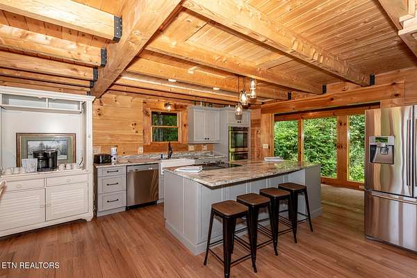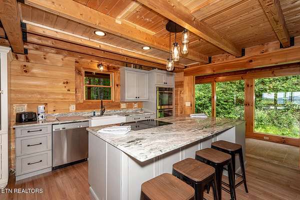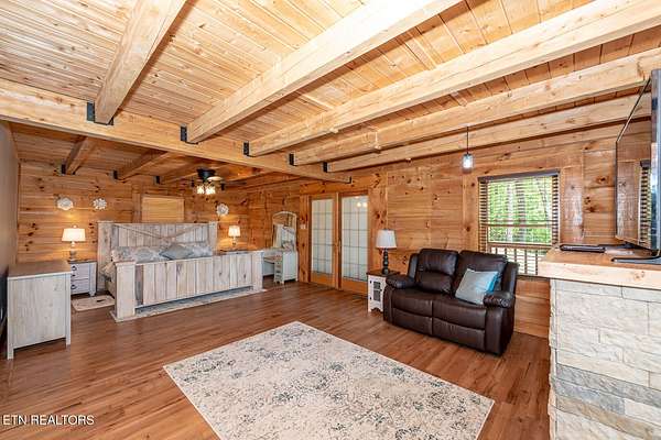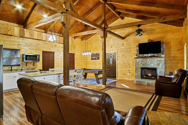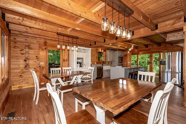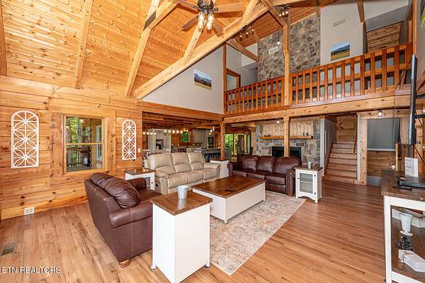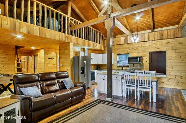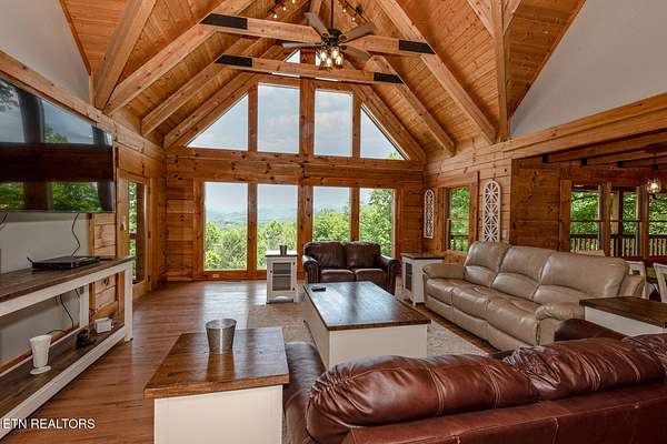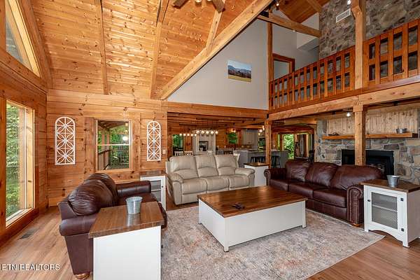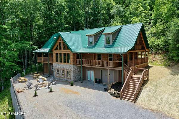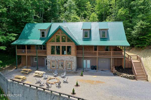 No deferred maintenance or DIY project necessary on this completely renovated five bedroom five bath lodge that sleeps up to 16 and separate guest house with two bedrooms and a loft that sleeps 6, located 1500 feet from the Rich Mountain Rd exit out of Cades Cove and the trailheads for Ace Gap and Rich Mountain hiking trails. Situated on 7.22 acres of private woodland, this property offers spectacular mountain views, convenient seclusion, and the opportunity to build additional structures, already having underground electric and water in place. Both existing homes offer every desired amenity including theater, pool tables, hot tubs, fire rings, stainless steel appliances, new bedding, fully equipped kitchens, high end grills, new roofs, and main lodge offers an elevator and garage. This could be a family legacy property, offering the ability to live in one home, while renting or leasing the others, or maximize rental income on all and enjoy when not rented. This is a truly magical location that feels as though you are in Cades Cove, yet less than five minutes from Tuckaleechee Caverns, IGA Grocery Store, Vee Hollow Mountain Bike Trails, the Little River, shops and restaurants in the City of Townsend, and less than thirty minutes from Pigeon Forge, Knoxville Airport, Maryville, hospitals, and under 45 minutes from the University of Tennessee, Knoxville, and Gatlinburg.
