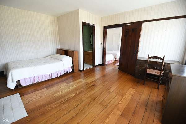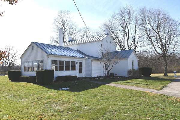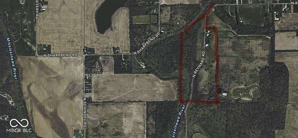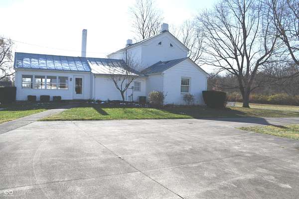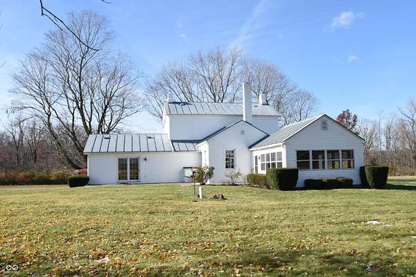 Historic home masterfully constructed in 1860 from local farm timbers with over 41 acres of scenic land including woods, pastures, and private Mississinewa river access equal to over 2000 feet of riverfront. Up to half of the property is wooded and adjacent to the river and part of the south parcel crosses the river. The property includes outbuildings including a barn and oversized 4 car garage. Inside, the home features high ceilings, original hardwood floors, built-in presses, and multiple fireplaces along with a wood-burning stove. A newly installed electric HVAC system provides modern comfort. The layout includes a spiral staircase leading to the second level, where you'll find large bedrooms and a spacious walk-in closet. Additional highlights include a library, a large glass enclosed porch and a generous laundry/mud room. Combining historic character with farm living, this property offers ample living space indoors and out in a lovely private setting. Amazing use as farm, equestrian, or recreation property.
