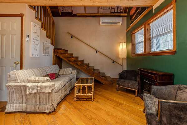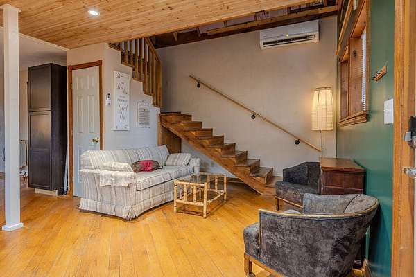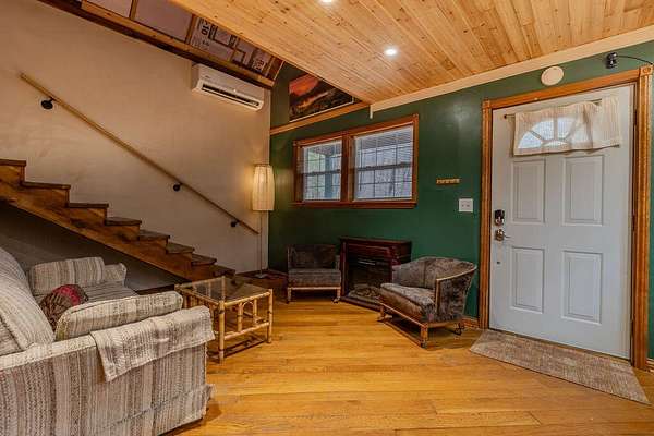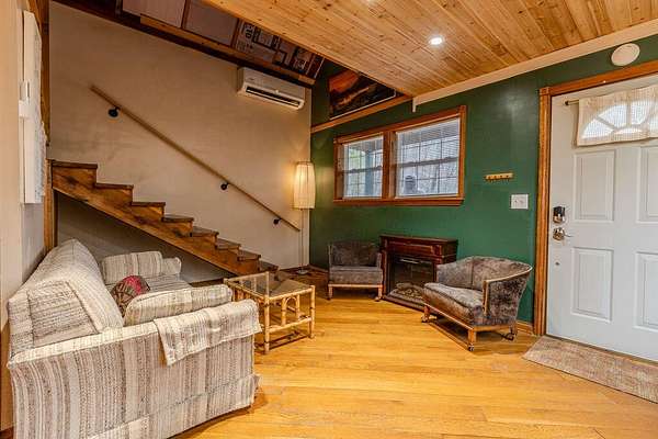Tucked away on approximately 3 wooded acres, this charming A-frame getaway offers the perfect blend of privacy, character and convenience. Located just 1/2 mile from Brooklyn Belle Market on Cranston, you'll enjoy a peaceful setting while still being close to local essentials. The cabin features 2 bedrooms and 1 1/2 bathrooms with a warm, inviting interior that captures the classic A-frame feel. A mini-split system provides efficient heating and cooling, while a wall-mounted propane gas heater adds extra warmth and coziness during cooler months. The property is being sold fully furnished, making it truly turnkey whether you're looking for a weekend retreat, vacation rental opportunity or a quiet full-time escape. Situated on approximately 3 acres with no deed restrictions, the property offers flexibility and plenty of space to relax, unwind and enjoy the surrounding natural setting.