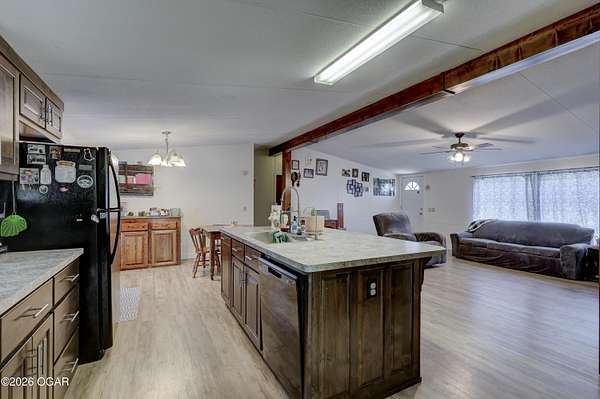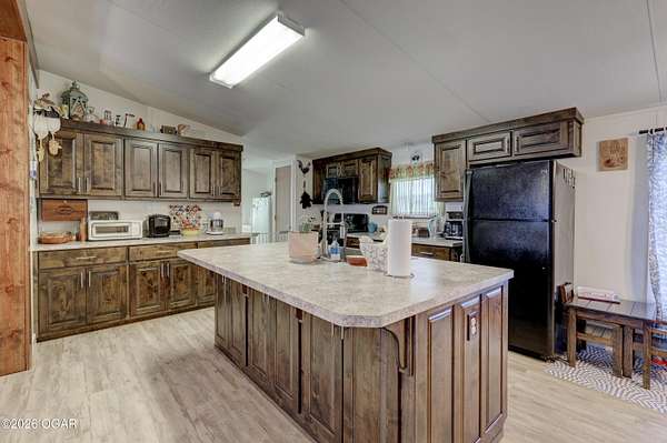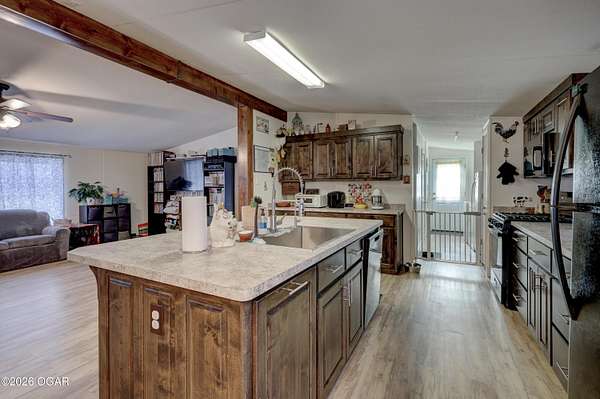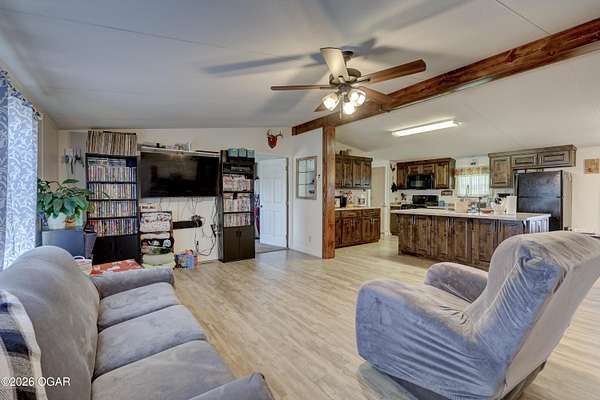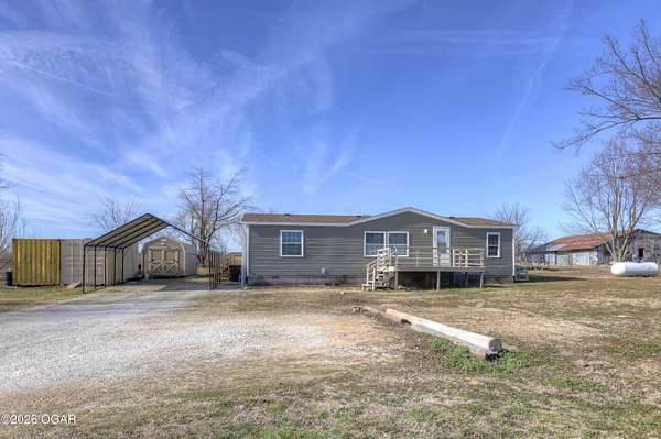 Just under 3 acres in the Carl Junction School District! This 3-bedroom, 2-bath home offers an open floor plan with many updates throughout, including the kitchen with plenty of cabinet space, island and gas oven. This is a Manufactured Home on a permanent foundation with rural water and septic. Metal storage buildings and a carport convey with the property.