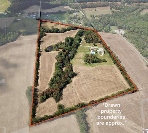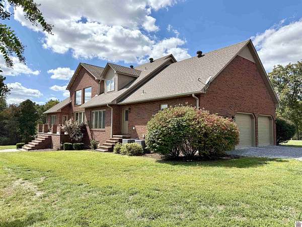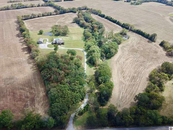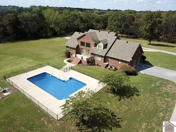 !! PRICE REDUCED !! 5-bed, 2.5 bath custom built brick home on approx. 47 acres. Inside features include true hardwood and tile flooring throughout, freshly painted interior, quartz countertops, solid oak cabinetry and built-ins, stainless kitchen appliances, and 2 brand-new HVAC systems. The large living & kitchen areas are perfect for entertaining, along with spacious bedrooms throughout. Outside, enjoy your own in-ground pool and patio area, a 60x40 shop with 3 large bay doors & a 9x15 office room with a full bath. The acreage is a rare blend of tillable, wooded, and pasture ground with 2 ponds and a creek winding through the center. You can raise your own livestock & crops, hunt & fish, or just enjoy true country living! Situated well off the highway with treelines surrounding, this property offers seclusion while still being within reach of town conveniences. Located under 2hrs from Nashville, TN, under 3.5hrs from St. Louis, MO and only minutes from KY Lake.