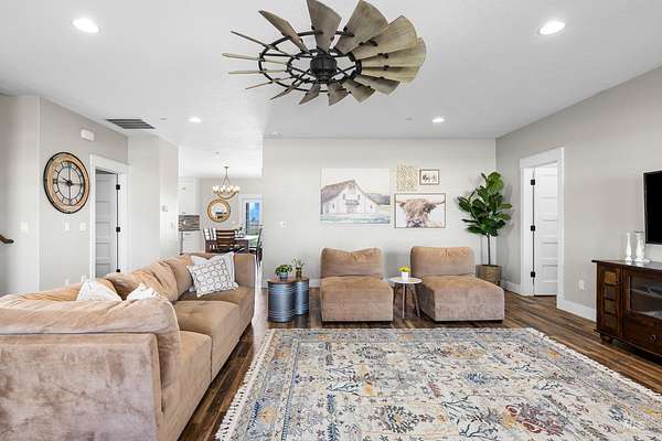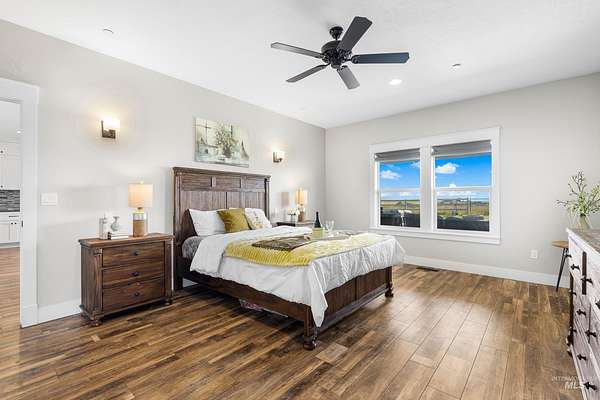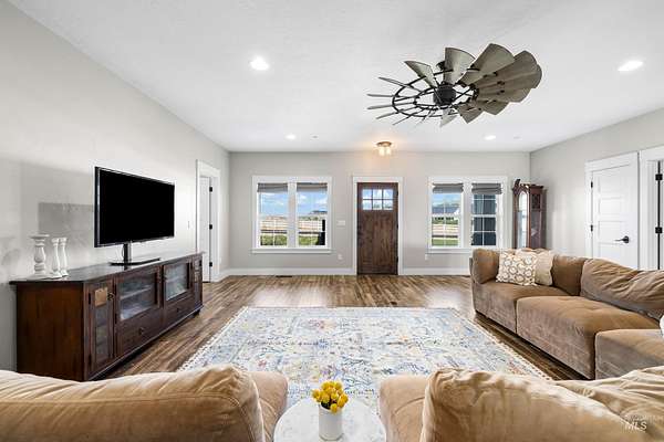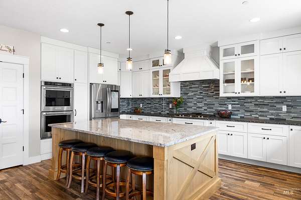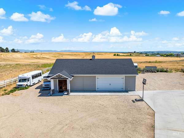 Welcome to a rare opportunity to own a private 3-acre property that perfectly balances modern sophistication with the serenity of country living. Built in 2018, this custom-designed 5-bedroom (4 bedroom + office), 3.5-bath residence offers 2,613 square feet of refined craftsmanship and timeless appeal. As you enter you are greeted by an expansive living spaces bathed in natural light. The gourmet kitchen is the heart of the home - featuring a grand granite island, built-in gas range, double ovens, and stunning custom cabinetry - ideal for both intimate gatherings and grand entertaining. The main-level primary suite is a private sanctuary with dual vanities, a soaking tub, walk-in tile shower, and a spacious dressing closet. Outside, a 30x50 heated and cooled shop with a bathroom and utility sink offers versatile space for a luxury garage, studio, or home office. Enjoy 2 acres of irrigated, fenced pasture with a loafing shed - perfect for horses or hobby livestock - while the covered patio and manicured grounds invite relaxation and outdoor dining. Additional highlights include a central vacuum system, whole-home air filtration, and RV amenities. This exceptional property offers a rare blend of privacy, quality, and convenience - just minutes from Nampa's best shopping, dining, and wine country. Experience the elevated charm of modern country living at its finest.