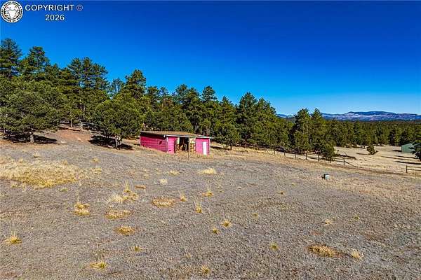 - Level, Meadow, Mountain View, Rural, Sloping, Trees/ Woods, View of Pikes Peak