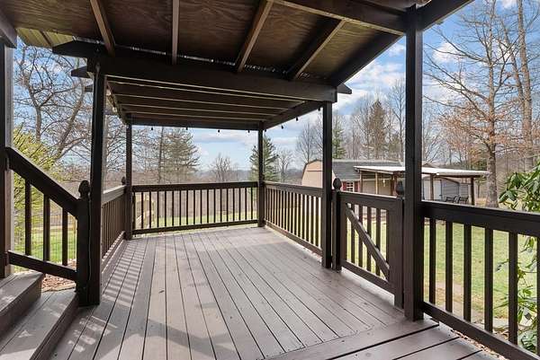 Charming home with 5+acres, located less than 1 mile off Hwy 58 in Laurel Fork. Home features: 1693 sq. ft., in the main home, PLUS a 560 sq. ft. finished, climate controlled detached building that would be great for a guest house, hobby room, studio, gym, business, man cave, or private office, home has 3 bedrooms, 2.5 baths, 756 sq. ft. of covered porches and an attached 576 sq. ft. garage. The open floor plan is designed for one level easy living, with a large living room, dining area, and kitchen with plenty of cabinet space. Newer upgrades - KitchenAid appliances, quartz countertops, undermount composite sink, LVP & tile flooring, cabinets in laundry, paint throughout, light fixtures, gas logs, impression water system & water heater, whole house & shop Generac generator, deck stained, mini split in shop, 100 amp box to shop, plumbed for washer/dryer in shop. (washer and dryer in shop does not convey) New roof in 2025. Hot tub conveys. Land features 5.18 acres. Enjoy the outdoors with the expansive acreage, perfect for gardening, recreation, or simply soaking in the views. A standout feature is the separate, 20' x 28' finished building with a lean to & half bath-ideal for guests, a home office, or creative space. For those with a love for animals, the property is also equipped with a chicken coop. Also included is a 12' x 16 frame building and18' x 20 metal building. Low maintenance landscape rock and fencing in the back yard. Home was in a planned subdivision, but there is no HOA and the restrictions have expired per the deed. Great location between Hillsville and Meadows of Dan.