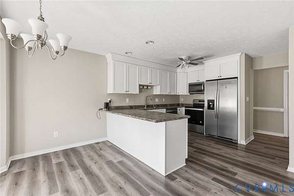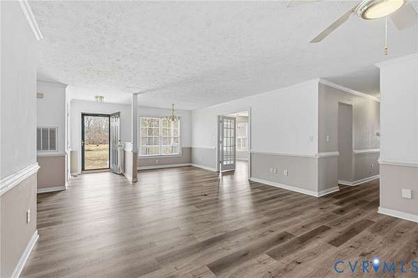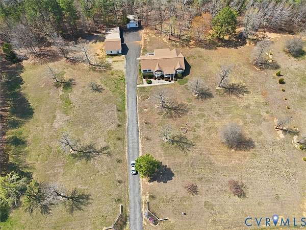 Welcome to peaceful country living in beautiful Amelia County! This charming ranch home sits on over 5 private acres and welcomes you with a classic full front porch, perfect for enjoying quiet mornings and scenic views. Inside, you'll find a well-appointed kitchen featuring abundant counter and cabinet space, a convenient peninsula island, and an open layout that flows seamlessly into the dining area, ideal for everyday living and entertaining. The expansive family room offers a warm and inviting atmosphere centered around a cozy gas brick fireplace. The spacious primary suite provides a relaxing retreat with an en suite bath that includes an oversized vanity, garden tub, and separate walk-in shower. Additional bedrooms are generously sized, offering comfort and flexibility for family, guests, or a home office. A functional laundry room with built-in cabinets adds extra convenience, while plentiful storage throughout the home and a pull-down attic provide plenty of space for organization. With more than 5 acres of land surrounding the home, you'll enjoy privacy, room to roam, and endless possibilities for outdoor living.