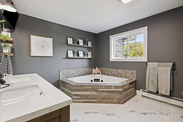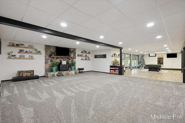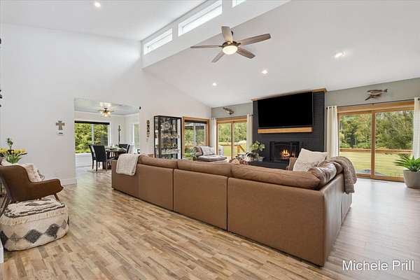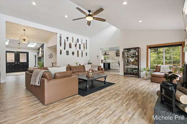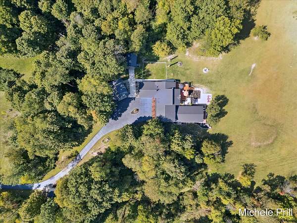ESCAPE to your private retreat where comfort, space, and nature come together seamlessly. Nestled in the serene countryside of Nashville, Michigan, 9877 Brumm River Drive is a beautifully private country estate set on 14.46 acres. Originally built in 1971, this fully renovated ranch estate offers over 5,200 square feet of finished living space - ideal for those seeking tranquility, recreation, and room to roam.Inside, you'll find soaring cathedral ceilings, all-new windows and cozy wood-burning fireplace anchoring the spacious living room. The open-concept design flows seamlessly into a dining area and a well-appointed kitchen with stainless steel appliances and a walk-in pantry. The primary suite-along with two additional bedrooms- is conveniently located on the main floor for easy single-level living. The fully finished basement expands your living space with a second full kitchen, a large recreational area, and one more non-conforming bedroom or office, plus direct access to heated indoor pool for year-round enjoyment and entertainment. Step outside to discover the property's many amenities: a durable all-metal roof, a private pond, forest view, and a custom patio ideal for gatherings. Multiple outbuildings include a 24x30 detached garage, a 20x36 heated pole barn with six mini-split units, and a 16x20 storage shed, providing ample space for hobbies, storage, or equipment. The two-plus-car heated attached garage adds even more convenience. Nature lovers and sportsmen will appreciate the excellent deer and turkey hunting opportunities right on the property, thanks to the wooded acreage and secluded settings. The home also features high-velocity central air, baseboard hot water heating, a wood-burning propane furnace, and well-and-septic utilities. Whether you're looking for a peaceful homestead, a hobby farm, or a recreational paradise, this turn-key estate delivers the best of country living with every modern comfort in place.