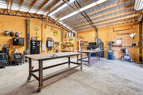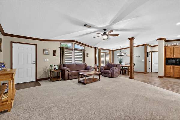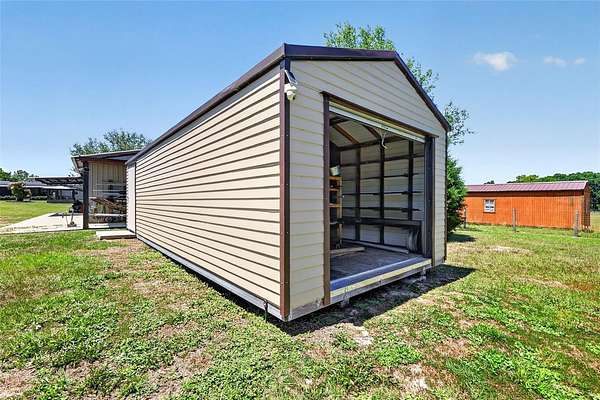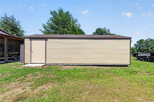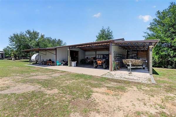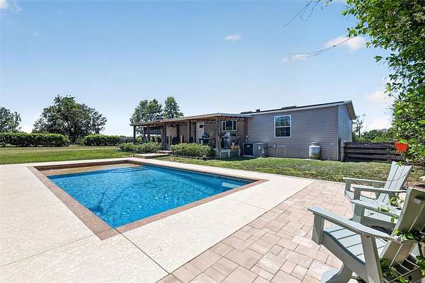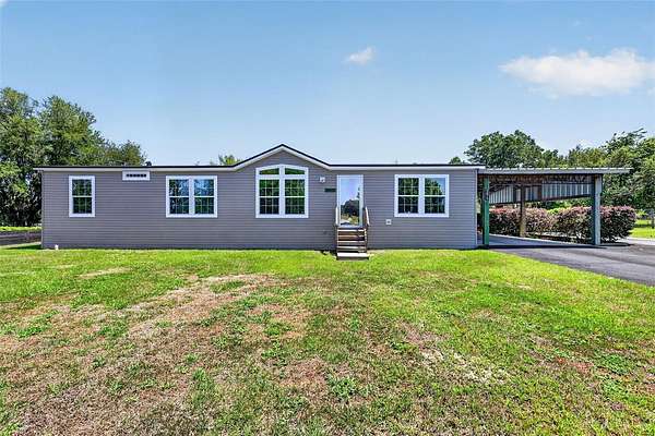 Experience the ultimate in country luxury with this meticulously upgraded 3-bd, 2-bth, split plan, residence nestled on 2.41 pristine fenced acres. Home has been transformed with high-end, residential-grade finishes that blur the lines between manufactured and traditional built living. From the virtually maintenance free salt pool to the dual-barn setup designed for both professional work and versatile storage, every inch of this property is designed for efficiency, comfort, and serious hobbyists. Arrive in style driving on your paved driveway and park under your custom design extra-large attached covered parking. Brand new superior architectural single roof 2024. Extra Deep well for fresh iron-free water. This home has been thoughtfully reimagined with durability and energy savings in mind. Residential entryways replaced with high-quality residential house doors for superior security and curb appeal. All front windows feature professional tinting to significantly reduce cooling costs and provide privacy. Custom Interiors: Every room is finished with custom-made blinds and drapes. Premium upgraded vinyl hardwood plank flooring flows through the main living areas, kitchen, bathrooms, and laundry while the bedrooms feature luxurious, high-quality carpet for added comfort. Designer lighting and upgraded ceiling fans installed throughout for a polished, modern look. The Chef’s Kitchen is equipped with a premium LP stove for precision cooking. The mud/laundry room is maximized for organization with newly added custom cabinetry and a pass-thru closet to the master bathroom. Step into your Outdoor Oasis for effortless Living. Dive into the in-ground Self-Maintaining Salt Pool and then relax in the custom tiki hut/gazebo. Unwind on the Expansive, custom built, covered back porch which offers the perfect vantage point for viewing your sprawling 2.41-acre estate. The Barns offers Versatility & Power: Two large outbuildings provide the perfect setup for a "live-work" lifestyle. Barn 1 (The Industrial Shop): A craftsman’s dream featuring a dedicated 200-amp electrical service (separate from the house), custom internal air lines, an exterior compressor hookup, and wiring for heavy-duty tools like welders and plasma cutters. Barn 2 (Storage/Office): A secondary large structure perfect for potential climate-controlled storage, a quiet home office, or a creative studio. RV Hookup: Bring your RV or have family and friends for extended time with their own accommodations. In addition to its high-end upgrades and versatile barns, this property is a true haven for those seeking comfort, relaxation, and outdoor living. Enjoy peaceful country living surrounded by wide open spaces, where you can unwind on the spacious porch or create your own garden oasis within the fenced acreage. Whether you're hosting gatherings under the custom gazebo, tending to a vegetable patch, or simply soaking in the tranquility of nature, this home offers an inviting lifestyle that blends luxury with the charm of rural Florida. DON'T WAIT… schedule your showing today!!!