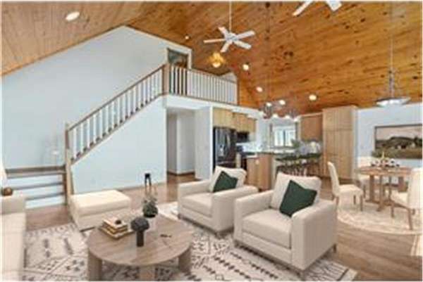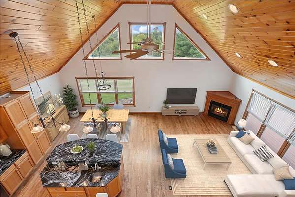 Est $3,351/moNestled on a serene and private 6+ acres, this custom-built home features 3 bedrooms and 3 full baths. The property boasts hickory cabinets, hard surface counters, hardwood floors, and a gorgeous gas fireplace. With soaring vaulted ceilings and a walkout lower level complete with in-floor heating and a wet bar, it's perfect for entertaining. Additionally, the home includes an oversized 3-car garage with in floor heat, a charming brick patio, and a huge deck overlooking the private yard.