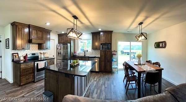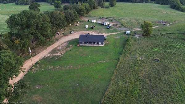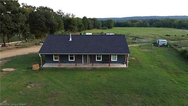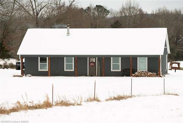 Welcome to this beautiful 3-bedroom, 2-bath home built in 2023, perfectly situated on 27.73 acres of fully fenced and cross-fenced land-ideal for horses and cattle. The land rolls gently offering breathtaking views of Mt. Magazine and produces approximately 50 bales of hay 4 times per year. Inside, the home features custom cabinetry throughout, offering a high-end touch. The open-concept layout is filled with natural light, and the design strikes a perfect balance between modern comfort and country charm. With plenty of space for additional outbuildings, barns, or recreational use, this property is ready for your vision!
