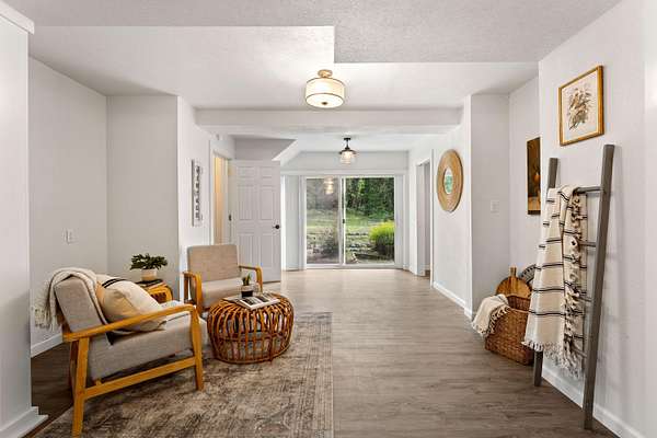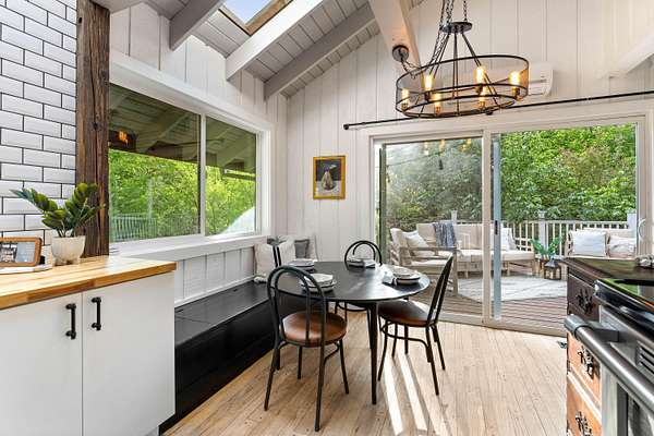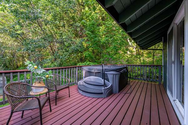 Enjoy the beauty and tranquility of nature on the stunning 3 acre property featuring a seasonal creek & charming outdoor spaces. This unique home offers 3 bedrms, plus a 336 ft. loft providing excellent potential for multifamily living. The main level features special touches throughout, including an updated kitchen w/ subway tile, a farmhouse, apron sink, & elegant European birch countertops & soft, closed cabinetry. The white oak pegged floors & open beam ceilings create a bright, & spacious feel in the living room. Convenient additions include just off the kitchen a 32 x 16 deck offers a perfect space to relax or entertain. The primary bedroom opens to a private 20 x 12 deck w/ a hot tub for ultimate comfort. The basement features 2 of the bedrms, a stylish kitchen & a full bath ideal for guests/extended family. Pathways & cozy sitting areas lead to the creek adding to the property serene charm. Also included is a chicken coop perfect for those interested in hobby farming.