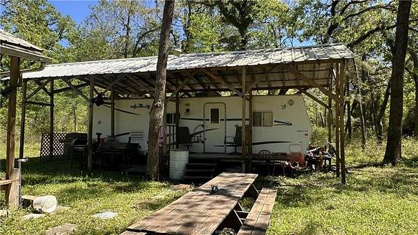The Rocky Ridge Retreat is a Southern Madison County recreational tract with 12.98 acres of heavily wooded East Texas land, ideal for hunting, camping, weekend retreats, or a future homesite. Approximately 90% wooded with a mix of mature hardwoods and softwoods, this property offers excellent privacy, natural beauty, and prime wildlife habitat. A seasonal creek adds to the character and recreational appeal of the land. This turnkey property is set up and ready to enjoy with a water well, septic system, and electricity already in place. Improvements include a Conex storage container, 3 RV awnings, and an additional storage shed, providing plenty of space for equipment, and outdoor gear. With an acceptable offer, two RVs will convey, making this an outstanding ready-to-use hunting camp or weekend getaway. Whether you're looking for Texas recreational land, hunting property, or wooded acreage in Madison County, this tract offers the infrastructure and seclusion buyers are searching for.