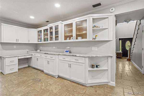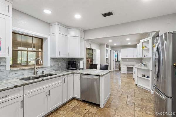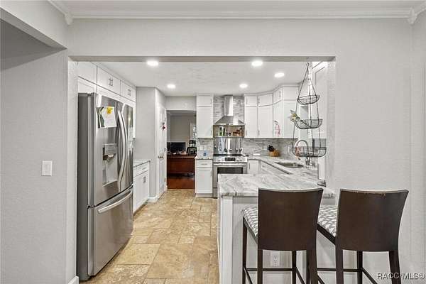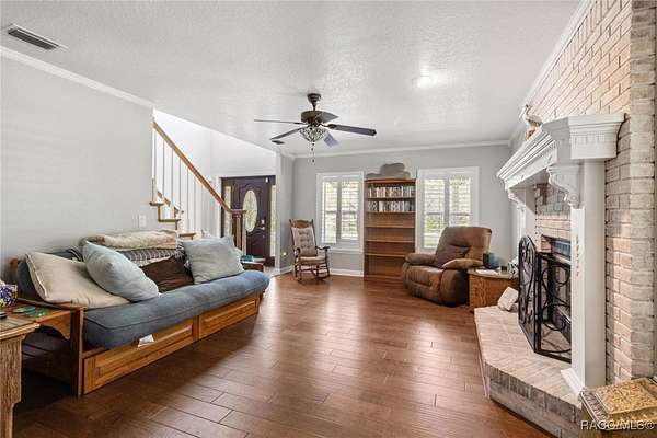 If your looking for an TURN KEY, ESTATE home, look no further. This colonial style 4 bedroom, 3 1/2 bath, 2 car garage home in the HIGHLY coveted, deed-restr*icted community of Baymeadows. Sitting at the QUIET end of a Cul-de-Sac, this is arguably one of the BEST SITES in Citrus County. The moment your drive up, you get that country living feeling. If your lucky, you will see deer grazing through the yard, adding that additional touch of peace & quiet. As you drive up on the brick paver driveway, you will notice the workshop, which can be converted over to a 2 car garage if need be. The workshop also has an AC unit & is rigged for a compressed air system. Upon entering the home, you will notice a beautiful split & priv*ate floor plan. To the right, you have your master bedroom with a huge walk in closet in the bathroom. To the left, you have your family room where you can enjoy those cold winter months in front of a fireplace. You have multiple areas where you can place an office, so pick your productive spot. The kitchen has been fully remodeled from the original. You will enjoy the added sunroom by the pool, giving you that Florida feel good vibe. The kids room are located upstairs, and are identical in size. The upstairs bathroom separating the kids room was remodeled in 2024. Above the garage, lies another bedroom/in-law suite & has its own AC wall unit. Enjoy your summer months in the SALTWATER pool, & take a dip in the HEATED spa during the winter months. Both the pool & the spa are controlled by a handheld tablet (see pic).. Throughout this beautiful home, there are SAFETY rooms just incase a TORNADO suddenly pops up. These rooms can also be used as storage areas, hiding Christmas presents, etc. There are 2 different safety systems; ADT (contract is transferable) & Ring (stays with the home). Sensors are located throughout the house. Roof=2018, Water softener installed on 9/2022, Electrical panel replaced on 4/2022, home is wired for a 50 amp generator, 2 AC systems control the home. Pest control recently done on 4/2025. New Water Heater installed on 9/2025.