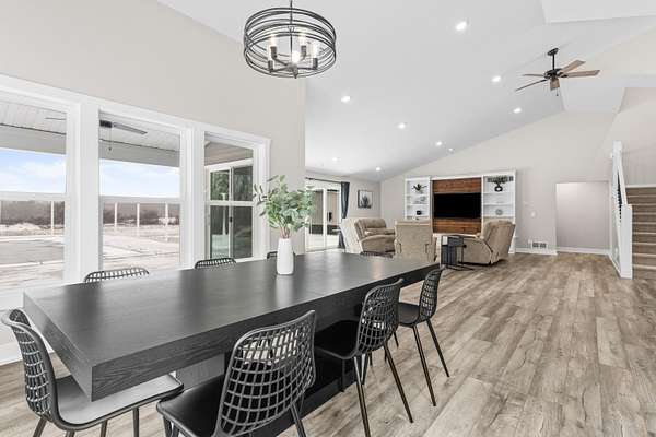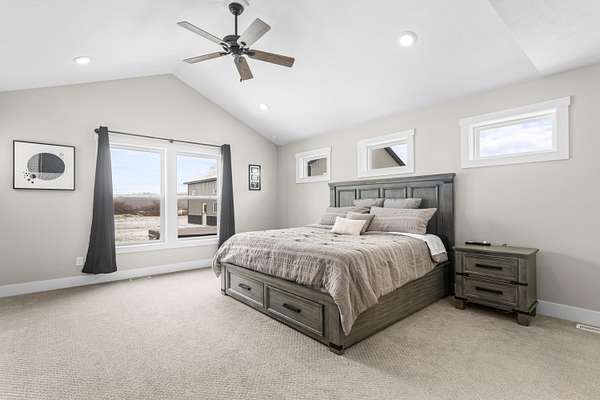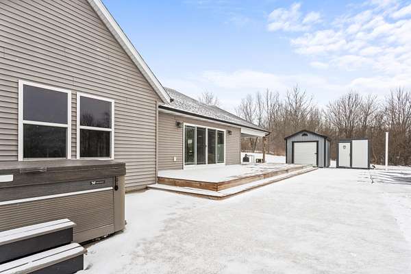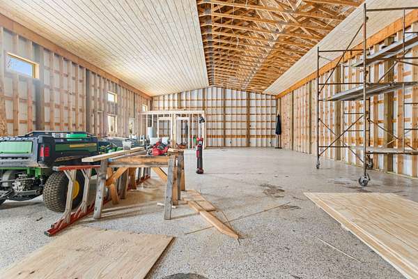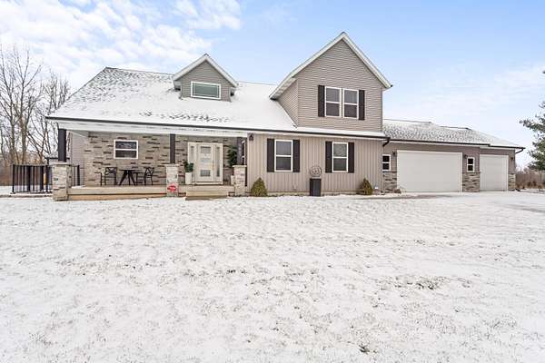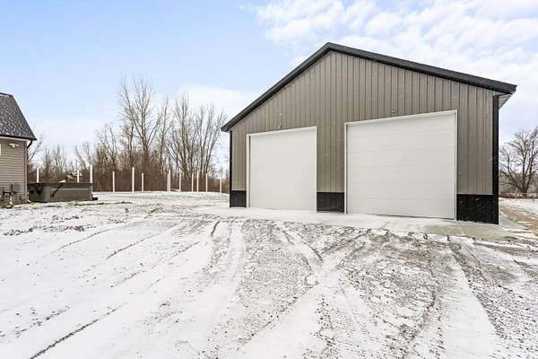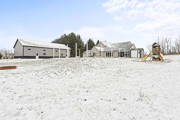 Newer 6-year-old home showcasing modern design and thoughtful functionality throughout. The main floor features a desirable primary suite with direct access to the deck, perfect for relaxing mornings or evenings outdoors. Enjoy a huge, expansive open-concept kitchen complete with quartz countertops, a spacious dining area, and a bright living room ideal for entertaining. Also on the main level is a newly added mudroom and a flexible office or second bedroom to suit your needs. Upstairs offers two additional bedrooms and a full bathroom. The finished basement provides a large recreation area, two more bedrooms, one bathroom, and plenty of storage space. If the interior doesn't sell you, the exterior certainly will. A brand-new 35x60 pole barn features epoxy floors, a finished ceiling, rough-in plumbing for a future bathroom, and both gas and electric service. The outdoor amenities continue with a 20x40 heated saltwater pool complete with an 8-foot sun ledge and automatic cover, plus a storage shed and a truly unique outdoor bathroom and shower. To top it all off, the oversized heated three-stall garage makes this property stand out even more. Call today for your private showing.
