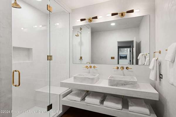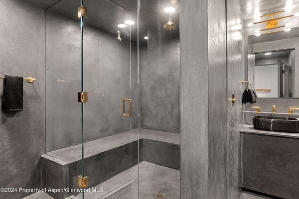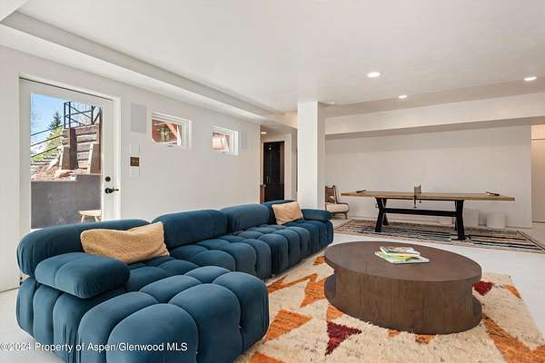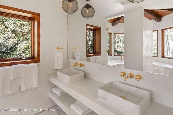 A pristine 7.42-acre alpine haven with Castle Creek flowing through its heart. This peaceful mountain sanctuary allows you to immerse yourself in nature, surrounded by the gentle sounds of the creek and the local wildlife. The home boasts an open great room, accented by hand-scraped beams and a wood-burning fireplace, that walks out to an expansive sun-soaked south-facing custom snowmelt stone patio, which centers around a welcoming gas fire pit, ideal for relaxing and taking in stunning mountain views of the Ashcroft Amphitheatre. A clean, minimalist aesthetic characterizes the completely remodeled home, featuring designer fixtures, plaster walls, and wide plank Walnut flooring. The kitchen showcases Italian Sahara Noir marble against custom cabinetry. The primary suite offers a luxurious escape with a soaking tub, dual vanities, a walk-in closet, and a gas fireplace. A versatile guest bedroom or office adjoins the suite. There's ample room for family and friends with four bedrooms, five baths, and a spacious lower-level family room complete with a ping pong table, a 6-person steam shower, and direct exterior hot tub access overlooking the river. The two-car garage offers ample storage. Equestrian lovers will appreciate the fenced pasture for horses. Private trails meander down to the river and crisscross the property opening up endless opportunities for exploration and adventure. Outdoor activities are at your doorstep with the American Lake Trailhead across the street, Ashcroft Ski Touring Center up the road, and world-class cycling out your door. Only 10 miles from downtown Aspen, this property offers acreage and privacy, natural beauty, and a beautiful modern refuge.