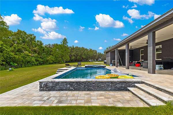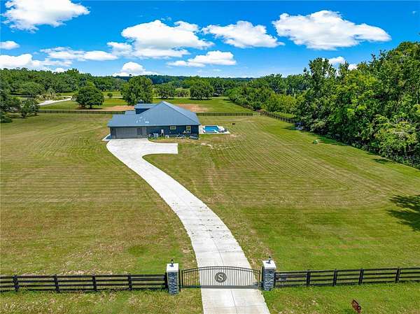 Wow! Check out this 2024, custom built 2952 sq ft, 4/3/2, pool home on 3.42 acres. Completely surrounded by a no-climb, 4 board fence, and electric gate, this home is ready for whatever your imagination desires. The outdoor features include a metal roof, whole home generator, hot tub and of course we can't forget the heated, saltwater pool. As you walk through the front door you are invited in by the open floor plan, but your eyes will immediately focus on the completely custom kitchen. It features a double oven, built in microwave, cooktop with pot filler, farmhouse style sink, and a massive eat-at island. The granite counter tops and solid wood cabinets are elegant and functional, not to mention the walk-in pantry. Downstairs there are three bedrooms and 2 bathrooms on one side of the home, and the Primary bedroom and bathroom are on the other side. The primary suite was fully designed with luxury in mind. It has an oversized walk-in shower and a closet that is big enough to be another bedroom. Upstairs is a massive bonus room, that has it's own A/C unit to keep it cool, perfect for a game room, or office, etc. Out back on the pool deck is yet another bonus room, that has it's own entrance and is perfect for outdoor entertaining, a card room, man cave, etc. Being built in 2024, this home is under the contractor warranty until November, 2025. Come take a look, I promise you won't be disappointed.