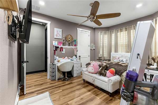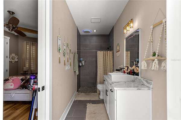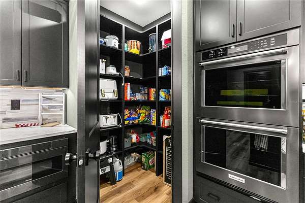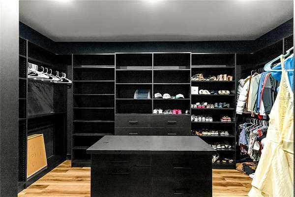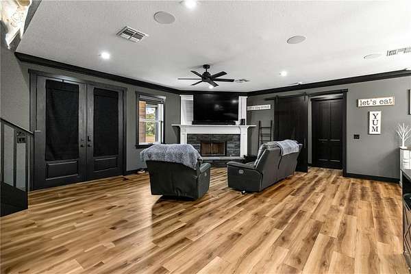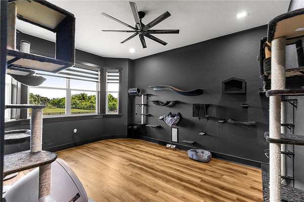 - Ceiling Fans(s), Crown Molding, Eat-In Kitchen, High Ceilings, Kitchen/Family Room Combo, Primary Bedroom Main Floor, Solid Surface Counters, Solid Wood Cabinets, Split Bedroom, Walk-In Closet(s)