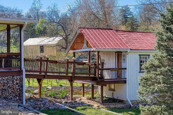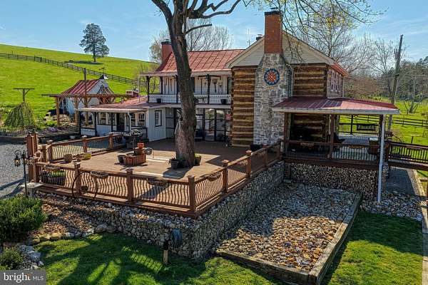 What better way to honor America's 250th anniversary than by owning a piece of its history? Welcome to 989 Swover Creek Road in Edinburg, VA-an incredibly well-maintained historic home that dates back to the early days of America and is rich with charm, character, and opportunity. Situated on 3.5 fully fenced acres, this unique property offers the perfect blend of historic appeal and functional homesteading. The log home features 4 bedrooms and 2 and a half bathrooms, along with a third-floor bonus room that would make an ideal office, library, or additional sleeping space. The recently added expansive wraparound deck truly elevates the home, creating a seamless connection to the outdoors and offering an exceptional space for entertaining or simply enjoying the peaceful surroundings. You'll also appreciate the newly constructed metal garage-just a few months old-featuring large doors on both sides for easy access and ample storage for vehicles, equipment, or hobbies. Additional outbuildings enhance the property's versatility, including a smaller garage/workshop and a convenient woodshed attached to the deck for easy firewood access during the colder months. A root cellar built into the hillside provides a naturally cool space for storing vegetables and preserves year-round. Garden enthusiasts will love the multiple garden areas ready for planting, along with an established orchard offering a variety of fruits, including peaches and apples. As you enter the property, you'll notice several beehives-currently inactive but ready for use if you'd like to start your own honey production. There's also a large chicken coop with an enclosed run, perfect for raising your own flock, and even a charming roadside egg stand ready for your farm-fresh offerings. One of the most unique features of the property is the quaint well house, connected to the main home by a small bridge. Full of character and charm, this space offers endless possibilities-use it as a game room, home office, cozy retreat, or additional living area. This property is truly a homesteader's dream, with much of the groundwork already in place. Whether you're looking to embrace a self-sufficient lifestyle or simply enjoy a one-of-a-kind historic home, 989 Swover Creek Road is a rare and special opportunity.
