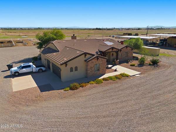 Welcome to a rare find combining country living, business opportunity, and equestrian luxury all in one place. Set on 47 irrigated acres, this income-producing property is perfect for horse lovers, trainers, or anyone looking to turn their passion into a profit. At the heart of the property is a thoughtfully designed main house offering 2,728 square feet of comfortable living space. Step inside to find an open-concept layout with tile flooring, recessed lighting, and large windows that fill every room with natural light. The living area features a stone hearth fireplace, creating a cozy yet spacious feel. The kitchen is a true gathering spot, complete with granite countertops, custom solid wood cabinetry, stainless steel appliances, pendant lighting, Every corner reflects quality craftsmanship and country charm. A second home offers 1,386 square feetideal for guests or on-site staff. Horse facilities include 40 covered stalls, a roping arena, hay barn, tack room, and hot walker. There are also 22 RV hookups with a dedicated laundry and bathroom facility. Just minutes from parks, schools, and shopping, you're close to everything but still have space to roam. This setup is ready for your next adventure.
