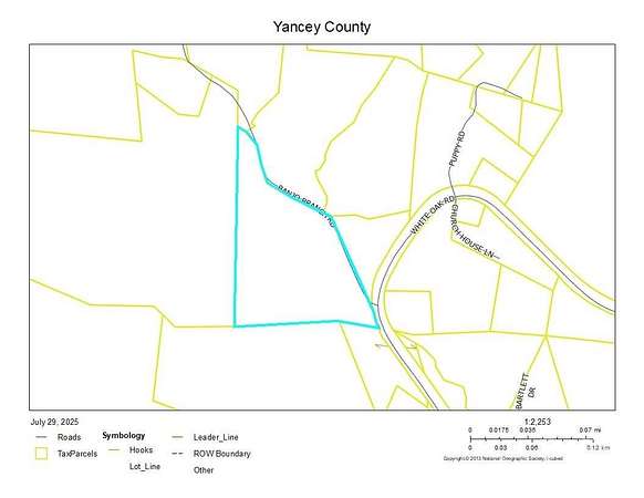 Follow 19N through the town of Burnsville. Continue onto 19E for 10.2 miles. Take a right onto Hwy 80S. Follow for about 7 miles until you see White Oak Creek Road on the right. Follow White Oak Creek Road and take another right onto Banjo Branch Road. The lot sits at the corner of White Oak Creek Road and Banjo Branch Road. Entrance/access is at the realty sign on Banjo Branch Road.