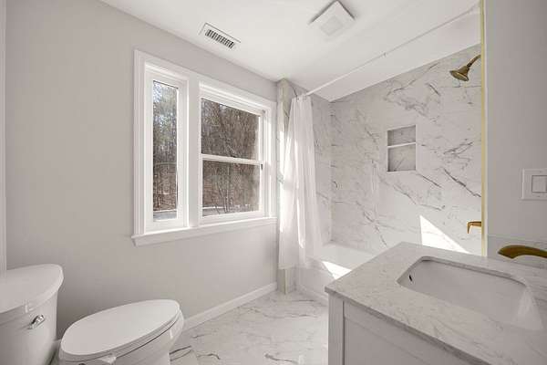 Welcome to this stunning, beautifully refreshed Colonial set on a private 2.5-acre lot in sought-after Bolton. From the moment you enter, you're greeted by sun-drenched spaces, gleaming hardwood floors, and a seamless layout designed for both everyday living and elevated entertaining. The show-stopping kitchen features upgraded cabinetry, a dramatic center island, stone countertops, stainless steel double ovens, and a wine chiller, all opening to a vaulted dining area with sliders to a spacious deck. The expansive second-floor primary suite is a true retreat, offering exceptional space, a custom walk-in closet, and a luxurious spa-like marble bath with double vanity. A first-floor bedroom adds incredible flexibility for guests or a home office. With a warm and inviting fireplaced living room, beautifully updated baths, and high-end finishes throughout, this home perfectly blends comfort, style, and privacy all in a prime location with easy access to major routes.