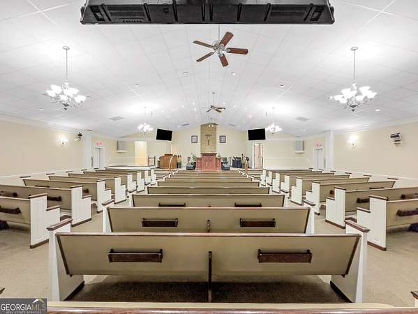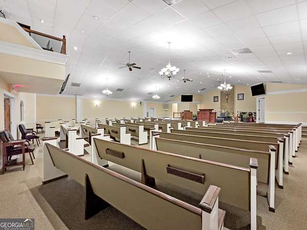 Breath taking church property located just outside of downtown Covington, 20 minutes from downtown McDonough, and about 20 minutes to Conyers. Easy access to I-20 and other major roads. This amazing church sits on 4.26 acres of land that is completely fenced. The property has a sanctuary that was built in 1998, a fellowship hall, outdoor pavilion, 2 out buildings, play ground and volleyball court. There are 100 paved parking spaces. As you enter the main building, you will find three nurseries, two Sunday school rooms, trustees office, two additional rooms and restrooms. As you open the double doors your breath will be taken away by the view. It offers one of the most beautiful sanctuaries you have ever seen. To the left of the altar is a baptismal pool (behind the pool is a changing area), to the right of the altar is the pastor's office with private restroom. Above the sanctuary is the sound system room, and two additional unfinished spaces that could be used for countless purposes. The seating capacity of the sanctuary is 200+. The separate fellowship hall is a nice open space that can be used for many purposes, the fireplace located in the corner gives the space a focal point that brings a feeling of home to the buiding. There is a fully equipped kitchen with all appliances that will remain with the sale, a walk in pantry for additional space and a separate laundry room. Sounds perfect right? There is more, in addition to all of this, there is a suite with walk in closet and a full bath for visitors. This church is move in ready. The current congregation will be relocating to another location. Do not wait, call the listing agent today to schedule a private showing.