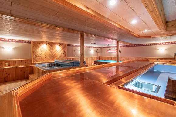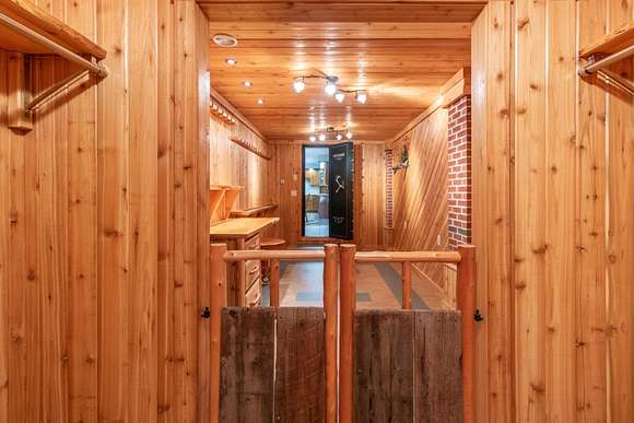 This exceptional property features spacious indoor and outdoor areas, including some one-of-a-kind surprises, both old and new, such as cozy living room with wood-burning fireplace, formal dining area, & chef's kitchen boasting ample cabinets, center island, & whimsical tile backsplash behind induction cooktop. Around the corner, a pantry & broom closet provide storage. A stunning octagonal sunroom offers 270-degree views of the picturesque backyard. The layout includes a collector's room behind a safe door, updated bathroom with a large shower, & 3 spacious bedrooms. The south end of home offers 2 more generously sized bedrooms, craft room/office between & laundry area. Lower-level recreation room is perfect for entertainment, complete with pool table, hot tub, & wet bar. With both attached & detached 2-car garages, sugarhouse/workshop, and barn, the 7.6A lot includes rolling lawns, private pond & flower beds, offering a serene outdoor retreat. Close to VAST/VASA trails & about 12 miles from Newport/Derby, this property is a must-see. Click on virtual tour for a 3D experience. Can also purchase with only 3.5A (no sugarhouse) for $539,900 (see MLS 5046308)