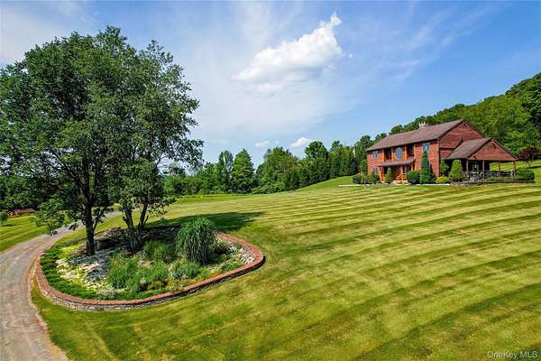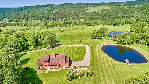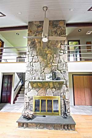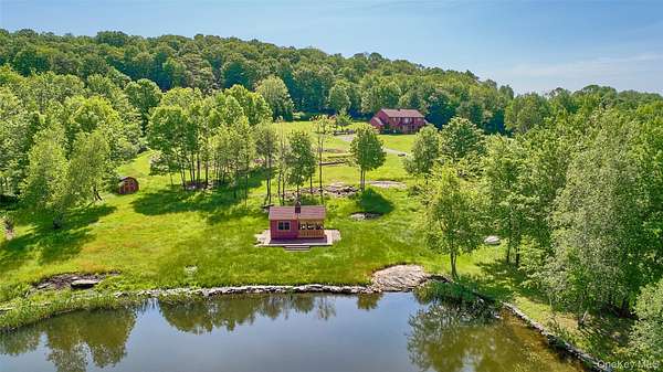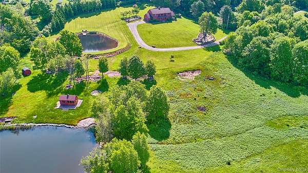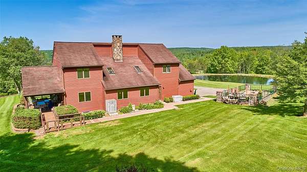 Backed up by woods, residents enjoy all the privacy and solitude of a house hidden amongst the peaks of the Sullivan County mountains. In addition, the property features two large, spring-fed ponds with a constant flow of water that keeps both ponds fed with clean and clear water deep enough to swim in. One is more than 15 feet deep in the middle, the other is around 10 feet, and the lower pond has a large outbuilding/gazebo.