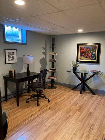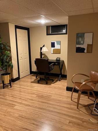 The kitchen has an open floor plan with a breakfast island and an adjoining dining area that's perfect for family gatherings. The second floor boasts a large primary suite, two other bedrooms, another full bathroom, and an open sitting room with magnificent views through a lovely round floor-to-ceiling window. There is also a 2-car attached garage and a full finished basement with three finished rooms suitable for a home office (or two), a family/media room, or a home gym.