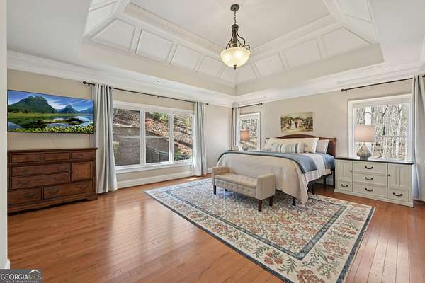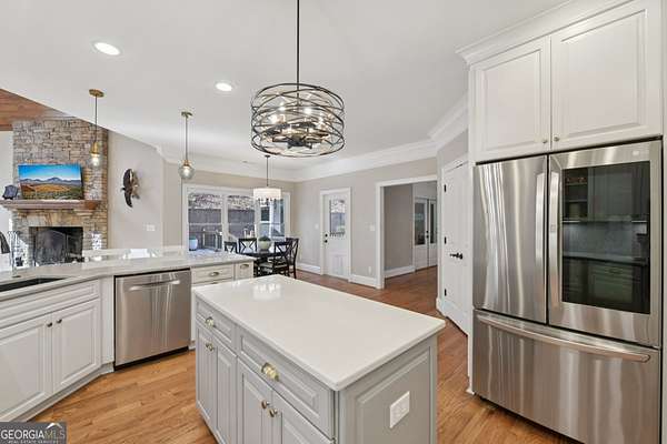 Luxury Gated Estate on 3.55 Acres with Multi-Generational Living & Resort-Style Outdoor Spaces - Minutes from Downtown Dahlonega Tucked at the end of a long private drive within a desirable gated community in the heart of North Georgia's Dahlonega, this exceptional 3.55-acre luxury estate offers a rare combination of privacy, space, and flexibility-just minutes from downtown Dahlonega, GA-400, shopping, dining, and the University of North Georgia. A picturesque approach sets the tone for this private mountain retreat designed for both everyday comfort and large-scale entertaining. The four-sided brick residence spans three finished levels and features 7 bedrooms, 5 full baths, and 1 half bath, with thoughtfully designed spaces ideal for multi-generational living, guests, or extended family. Inside, timeless craftsmanship is showcased through extensive trim work, coffered and vaulted ceilings, custom built-ins, and four stone fireplaces that add warmth and architectural character throughout. The main living area is anchored by a soaring stone fireplace and flows seamlessly into the dining room and screened porch, creating effortless indoor-outdoor living. The fully renovated chef's kitchen is both elegant and functional, featuring quartz countertops and backsplash, a custom wood vent hood, glass cabinetry, gas cooking, abundant storage, and a layout designed for entertaining. Adjacent is a welcoming keeping room with tongue-and-groove ceiling and stacked stone fireplace-an inviting secondary gathering space. The main level offers a total of four bedrooms, including the serene owner's suite with sitting area, private porch access, spa-like bath with dual vanities, oversized tiled shower, soaking tub, and a custom walk-in closet. Also on the main floor is a versatile bonus room ideal for a home office, library, or creative space-an unusually desirable feature to have so many functional rooms on one level. Upstairs, a private bonus suite with full bath provides flexible space for guests, teens, grandkids, or studio use. The finished terrace level is designed for lifestyle and privacy, offering two additional bedrooms, a full bath, media room, second living area, and a kitchen with a stove, plus direct access to a private two-car garage with its own driveway-perfect for in-law living or guest accommodations. Garage and storage options are exceptional, with four total garage spaces, including a tandem configuration, making this property ideal for car enthusiasts, storage, or workshop use. Outdoor living is truly a highlight, offering year-round enjoyment with a screened porch, open-air grilling area, outdoor stone fireplace, courtyard with turf, cafe lighting, fenced outdoor living spaces, and wooded privacy-perfect for entertaining, pets, or relaxing in your own private mountain setting. Additional features include a central vacuum, extensive storage, multiple gathering spaces, and access to neighborhood amenities, including a gated entry, pool, tennis courts, and clubhouse. This is more than a home-it's a private mountain estate, luxury retreat, entertainer's dream, and multi-generational residence all in one, offering the perfect balance of seclusion and convenience in one of Dahlonega's most desirable gated communities. Disclaimer: All information deemed reliable but not guaranteed and should be independently verified. Photos & lot lines may be virtually staged to assist buyers in visualizing the property's potential. Contact the listing agent for more information or to schedule a private showing.