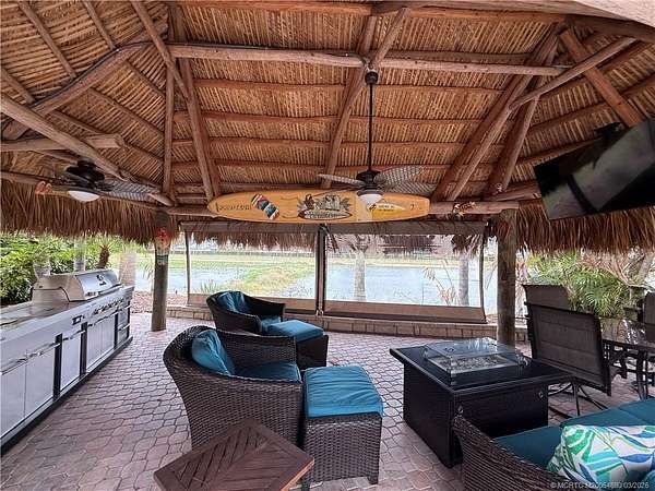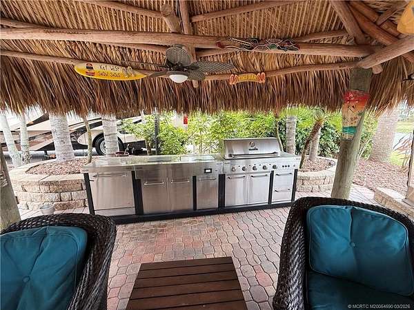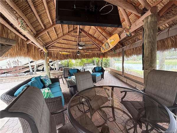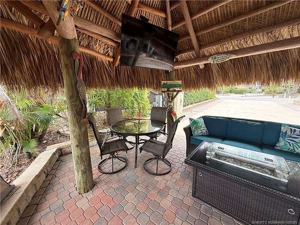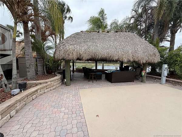 Gorgeous RV lot located in a gated, luxury Class A-only motorcoach resort, offering an exceptional blend of privacy, natural beauty, and resort-style outdoor living. The lot backs onto a large, tranquil lake highlighted by a picturesque lighted fountain and provides the perfect setting to fish, relax, and enjoy the peaceful surroundings. Professionally designed landscaping surrounds the property, thoughtfully planted to provide vibrant color and lush greenery throughout the year. The rear of the lot offers complete privacy and captures refreshing lake breezes, creating an ideal spot to unwind while watching birds and local wildlife in their natural habitat. A spacious tiki hut provides a shaded retreat for relaxing or entertaining while taking in the serene waterfront views. The lot is fully furnished and move-in ready, allowing you to immediately begin enjoying the luxury motorcoach lifestyle. A true nature lover's paradise.