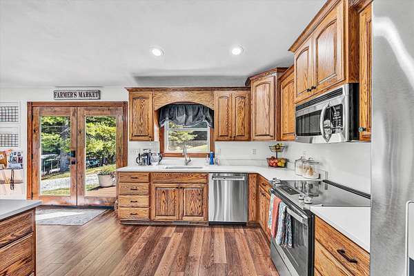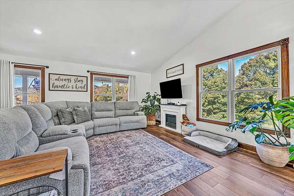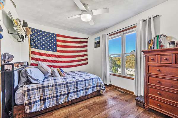 Welcome to our farmette on 6 acres w/ a stream, gorgeous mountain views & fiber internet! This one-owner custom-built home by GFW Construction offers great potential for multi-generational living. Each floor offers a primary suite, as well as laundry on both floors. The entry floor has been updated with LVP flooring, quartz counters in the kitchen & bathrooms. The basement has an open joist ceiling & features a large open family space as well as preparations for a kitchenette. Electrical line for the range has been run, cabinets/countertops have not been affixed but do convey. Several of the basement rooms are flex space and could certainly be used in a different manner than present use. There is a concrete room under the porch. This area could be a safe room. It has been divided in half &