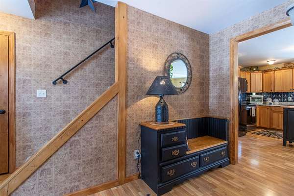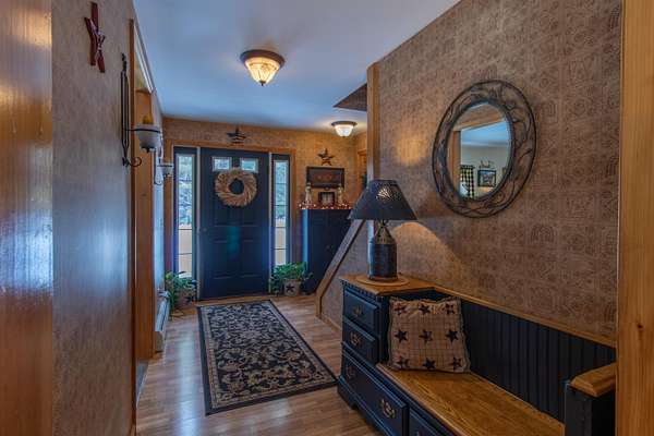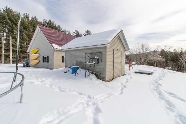 Pride of ownership shines throughout this meticulously maintained Cape-style home set on 1.7 peaceful acres near the end of a paved dead-end road in Brownington. The main level offers true single-level living with a spacious primary bedroom and full en suite with jetted tub. The large kitchen features quartz countertops, a farmhouse sink, and opens to the living room. Off the entry is a small salon with its own half bath, perfect for an in-home business or easily converted into a mudroom or laundry. A second half bath is just off the kitchen. The upper level includes two oversized bedrooms, a full bath, and an office/bonus room. The partially finished basement adds even more utility with a bar/rec room, plus a large storage/workshop/utility area with a pellet stove and secondary bulkhead access. Outdoor amenities elevate the property: a stamped concrete patio, gazebo, and stone fire pit create a great entertaining space. The 16' x 42' above-ground pool (set on its own asphalt apron) and swing set/playset are included if desired. The heated 2-car attached garage offers oversized doors, and additional storage comes via a powered 10' x 14' shed with generator hookup and a 7.5' x 40' Conex box with a 10' x 40' lean-to. Located just minutes from Orleans Village, Lake Willoughby, the VAST trail, Orleans Country Club, Newport, and major NEK recreation areas, this home offers comfort, space, and convenience in an ideal setting. Be sure to explore the 3D tour to fully appreciate all this property has to offer!